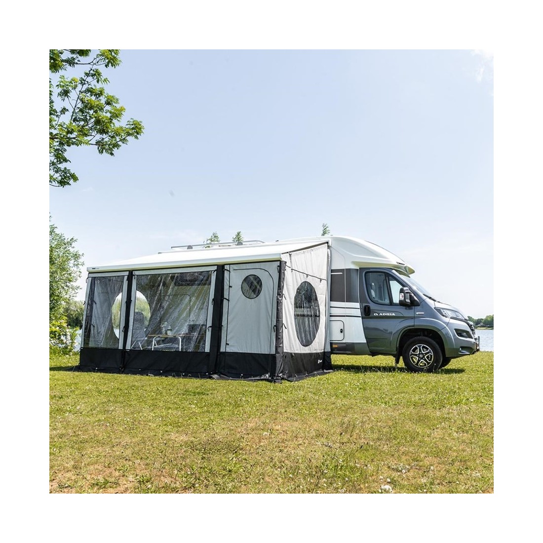 La puerta frontal Travellife Scala universal de 1,10 m es la elección perfecta para toldos Thule, Fiamma, Dometic y muchas otras marcas. Combinada con los paneles frontales y laterales, te permite transformar tu toldo en un espacio cerrado en cuestión de minutos.