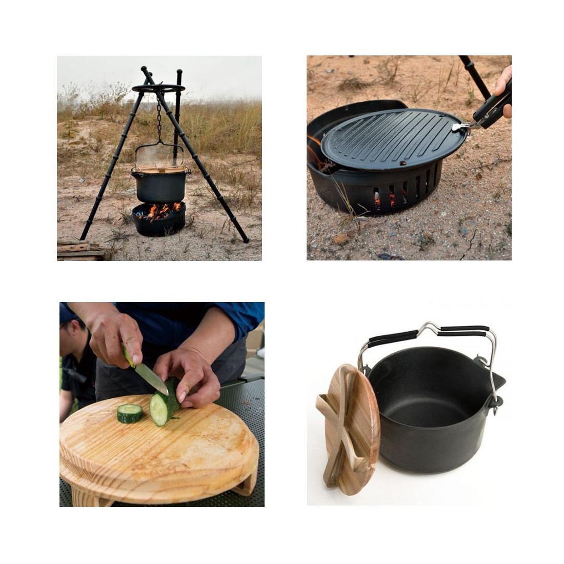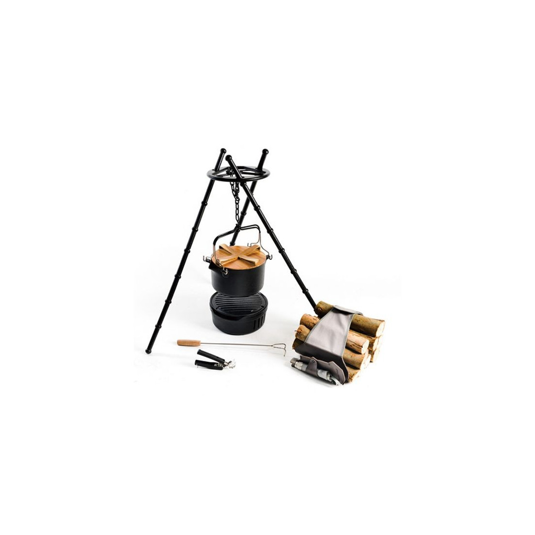No renuncies a una buena comida aunque estés en medio del bosque. Con este set de utensilios tendrás todo lo necesario para preparar un delicioso guiso, asar carne o freir un suculento aperitivo.