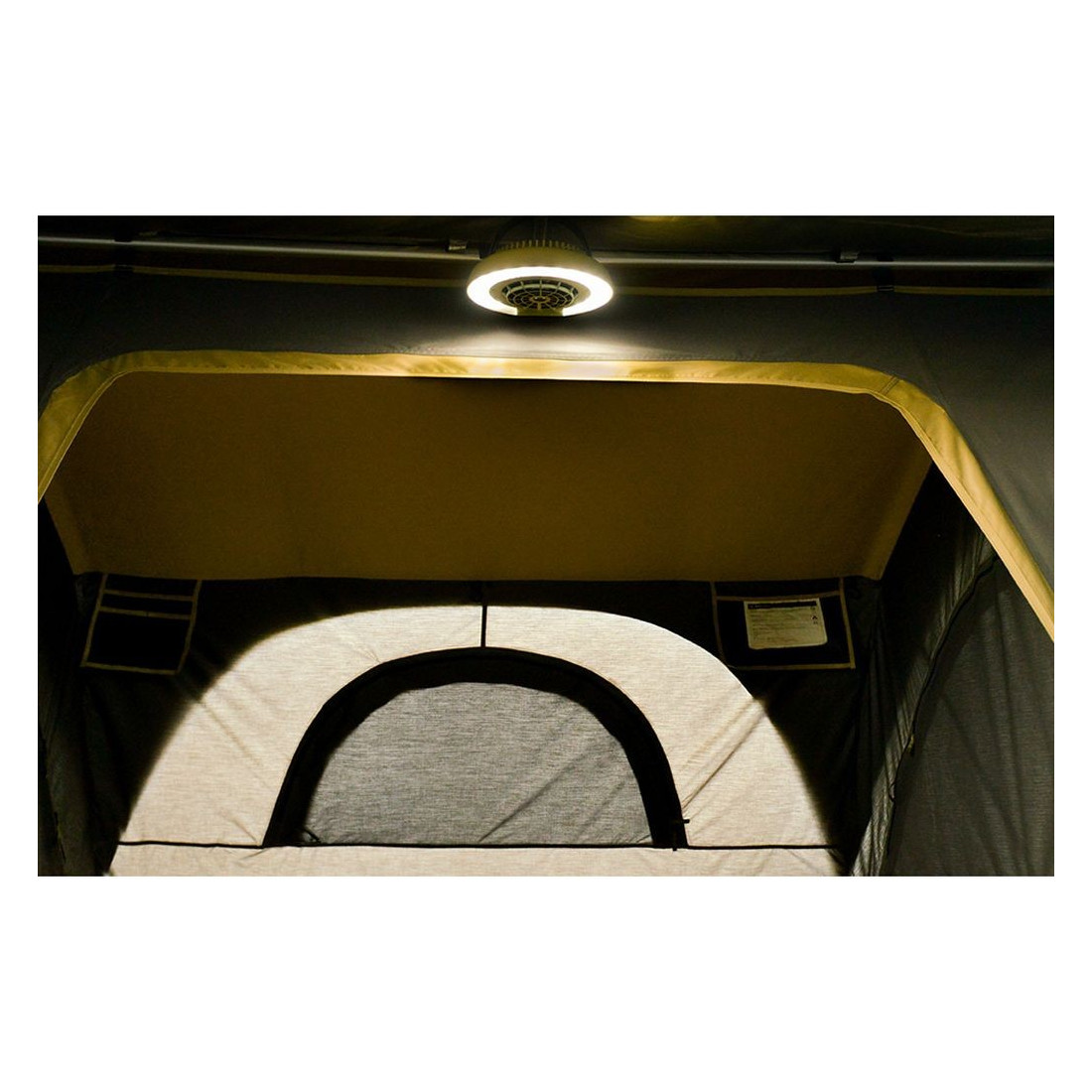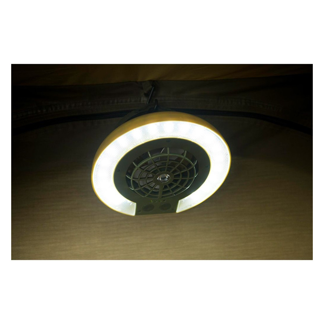 Está dotado de un potente ventilador capaz de refrescar el interior de la tienda de techo. Dispone de dos velocidades.