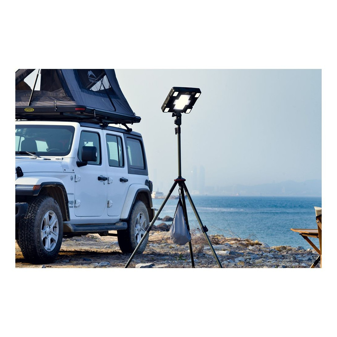 Esta lampara solar nos brinda un potente haz de luz con el que alumbrar una amplia zona.