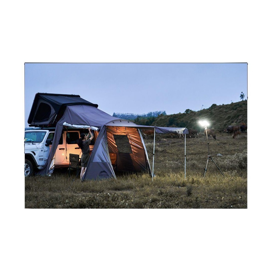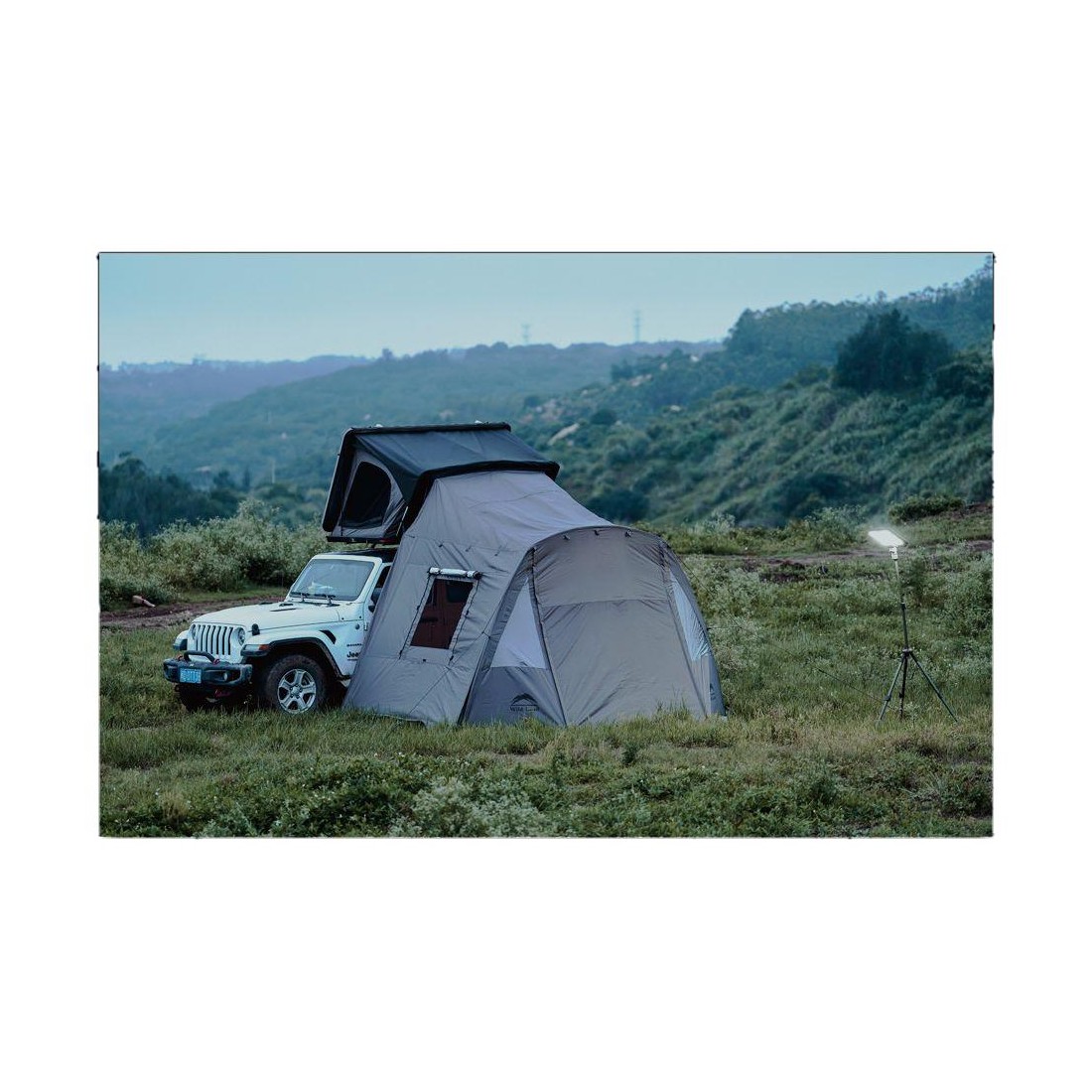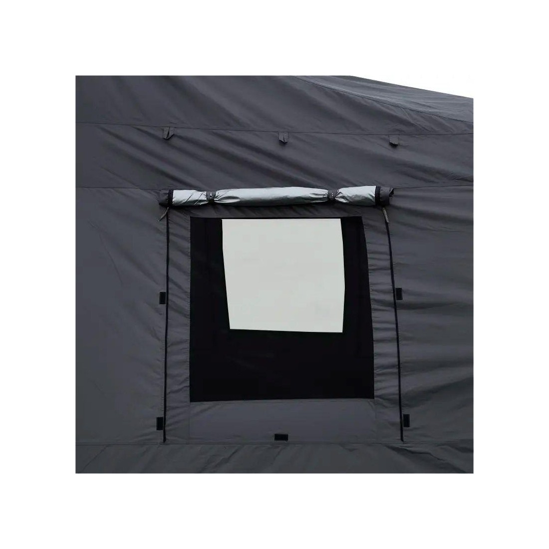 Se fija fácilmente con clips a la parte superior de la tienda, permitiendo cerrar de forma completamente privada el espacio frente al vehículo. Este espacio es perfecto para guardar el equipo de acampada, disfrutar de una comida o simplemente descansar a cubierto.