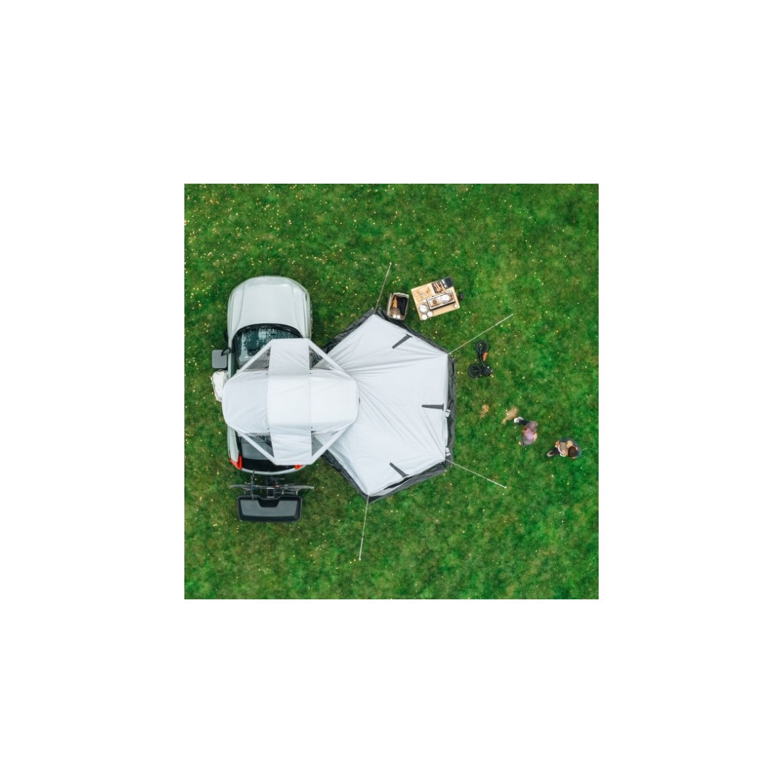 Se adapta y acopla perfectamente a la tienda de techo Thule Approach 2 talla M o L. La instalación es rápida y sencilla, utilizando las cremalleras de la tienda para colocar el toldo.