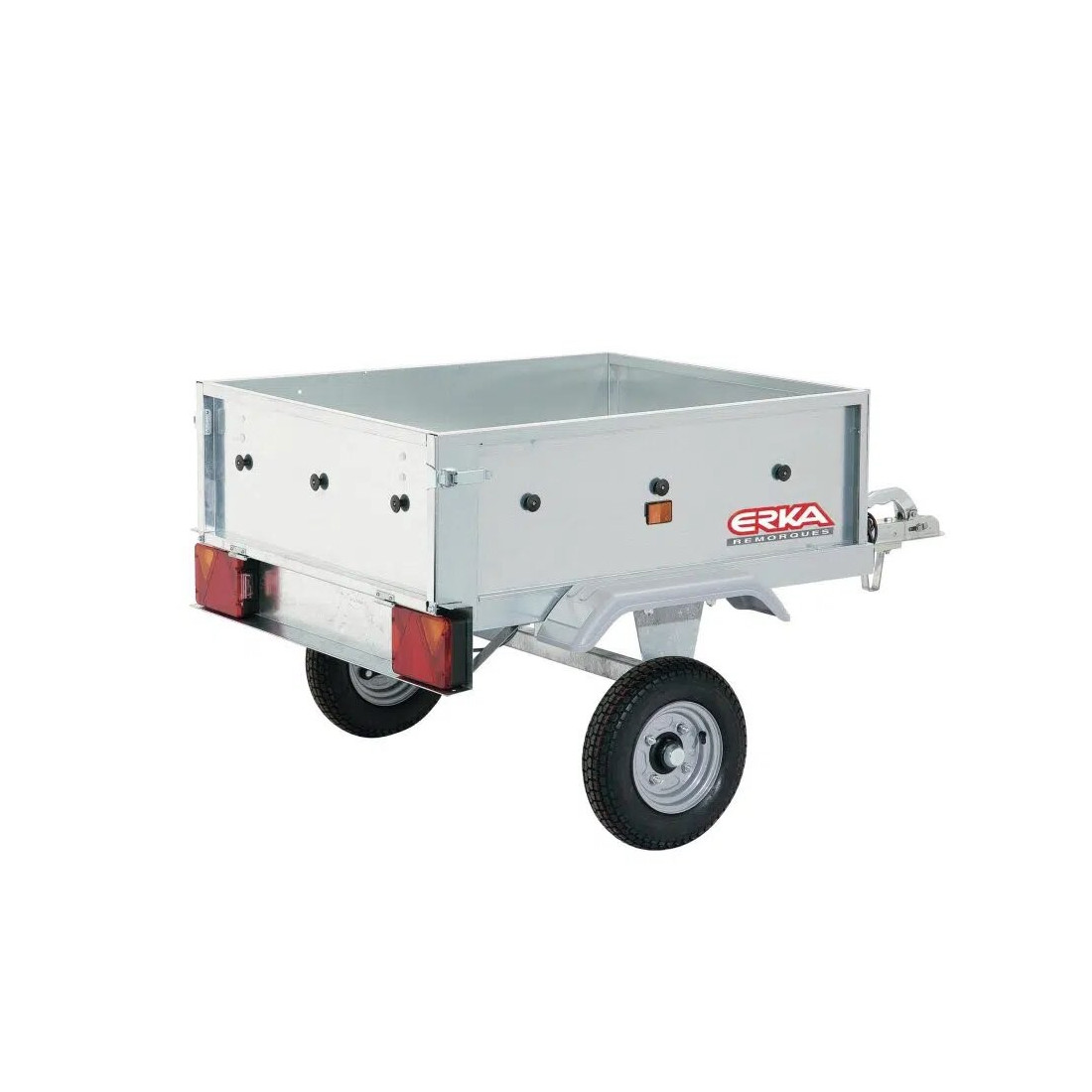 Remolque de carga especial para pequeñas cargas. El remolque Erka RK 818 será tu mejor aliado para el transporte de cualquier material que no quepa en tu maletero, como por ejemplo: material deportivo, herramientas, leña, utensilios, mesas de camping, etc.