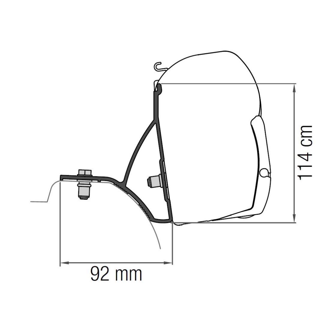 Con 2.60 m de largo, el toldo se instala fácilmente en la zona alta del techo de la furgoneta utilizando los soportes específicos incluidos, proporcionando una estabilidad y firmeza sin igual.