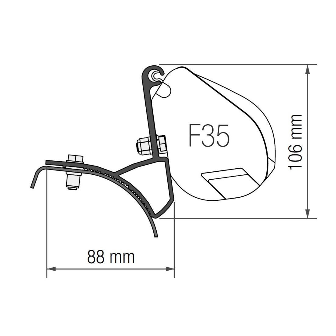 Con 2.20 m de largo, el toldo se instala fácilmente en la zona alta del techo de la furgoneta utilizando los soportes específicos incluidos, proporcionando una estabilidad y firmeza sin igual.