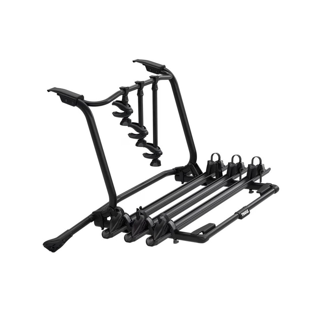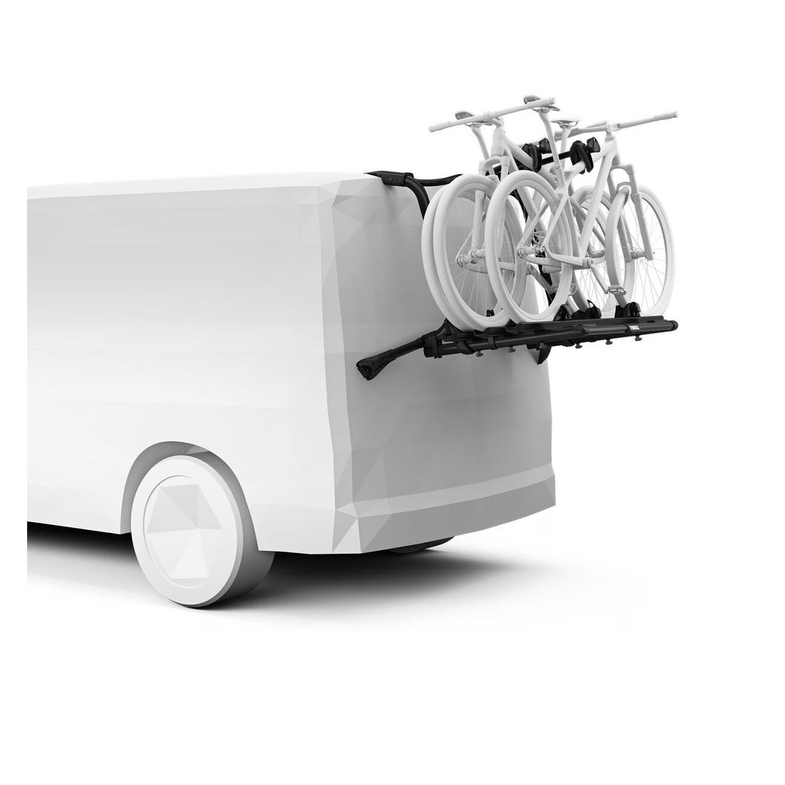Montaje sencillo de las bicicletas mediante brazos desmontables con limitadores de apriete bloqueables Thule AcuTight que hacen clic cuando se logra el apriete óptimo.