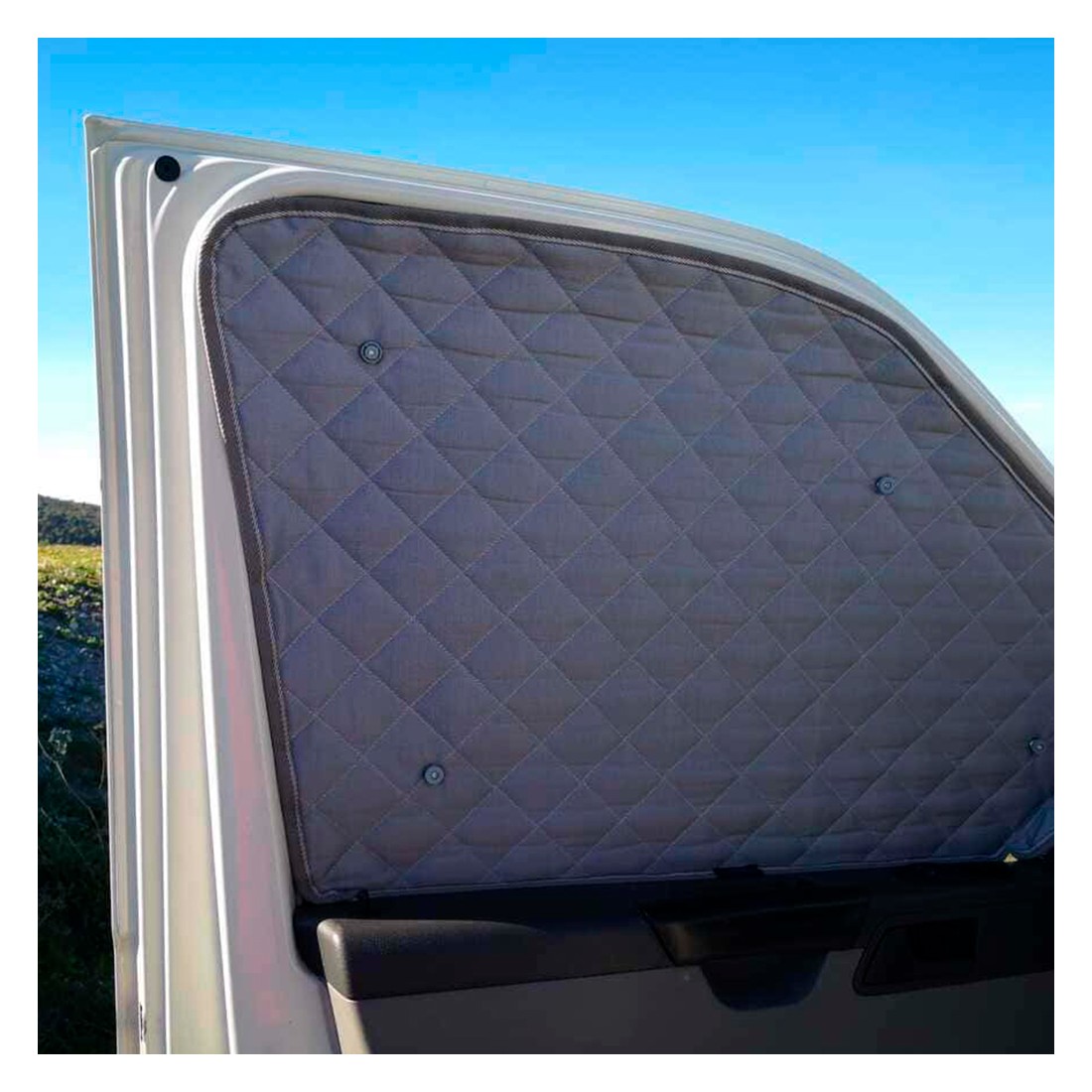 Aislante térmico y oscurecedor específico para furgoneta Renault Trafic (2001-2014) L2H2, Opel Vivaro (2001-2014) L2H2, Nissan Primastar (2002-2006) L2H2 que se adaptada a las dimensiones de la zona de la puerta corredera. Cómodo, práctico y añade un plus de privacidad a tu vehículo, convirtiéndolo en un refugio acogedor.