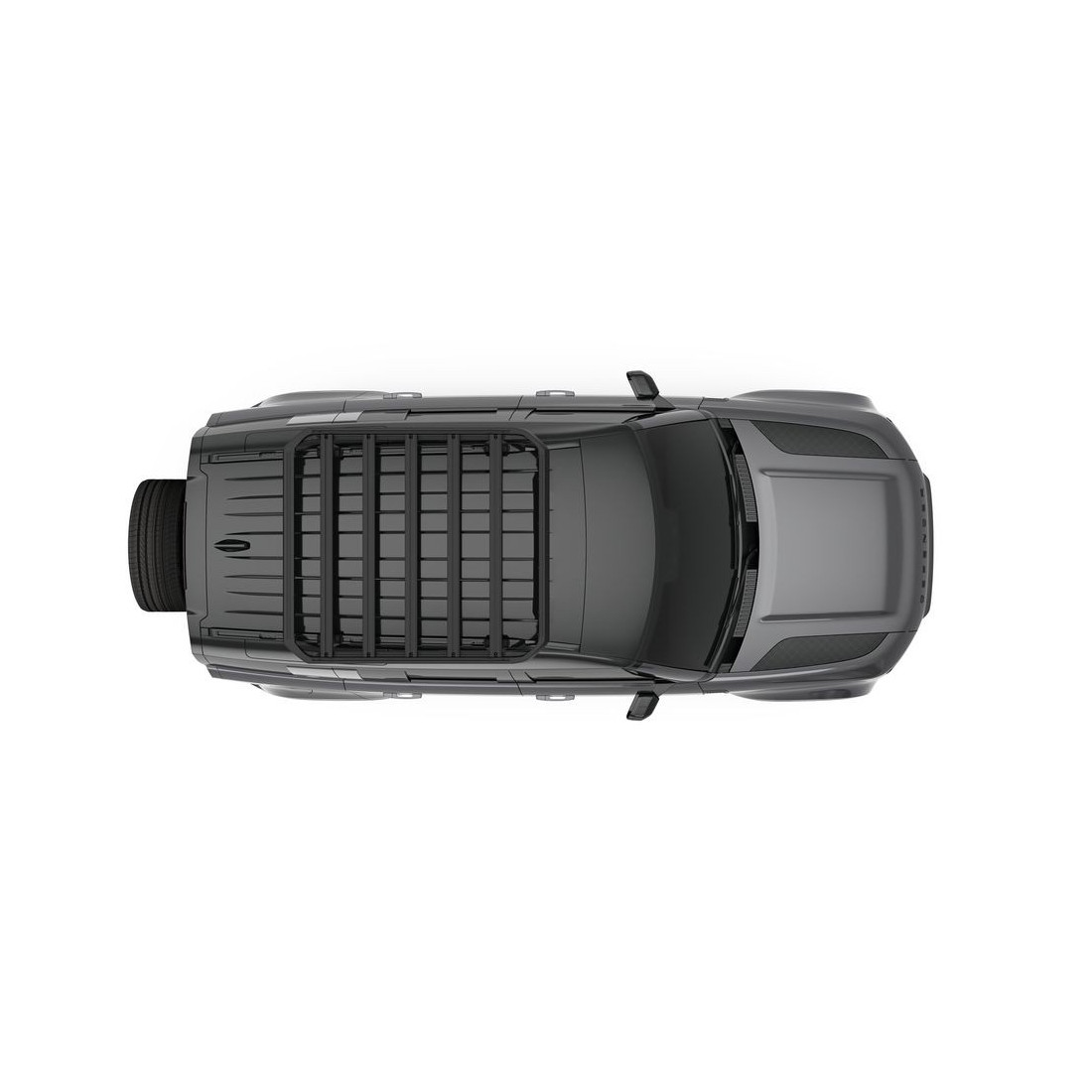 Las ranuras en T integradas en cada barra facilitan la fijación de accesorios como soportes adicionales, tiendas de techo, equipos de camping, componentes para overlanding y mucho más. Asimismo, la plataforma puede transformarse en una cesta de carga mediante la incorporación del Thule Caprock Railing Kit.