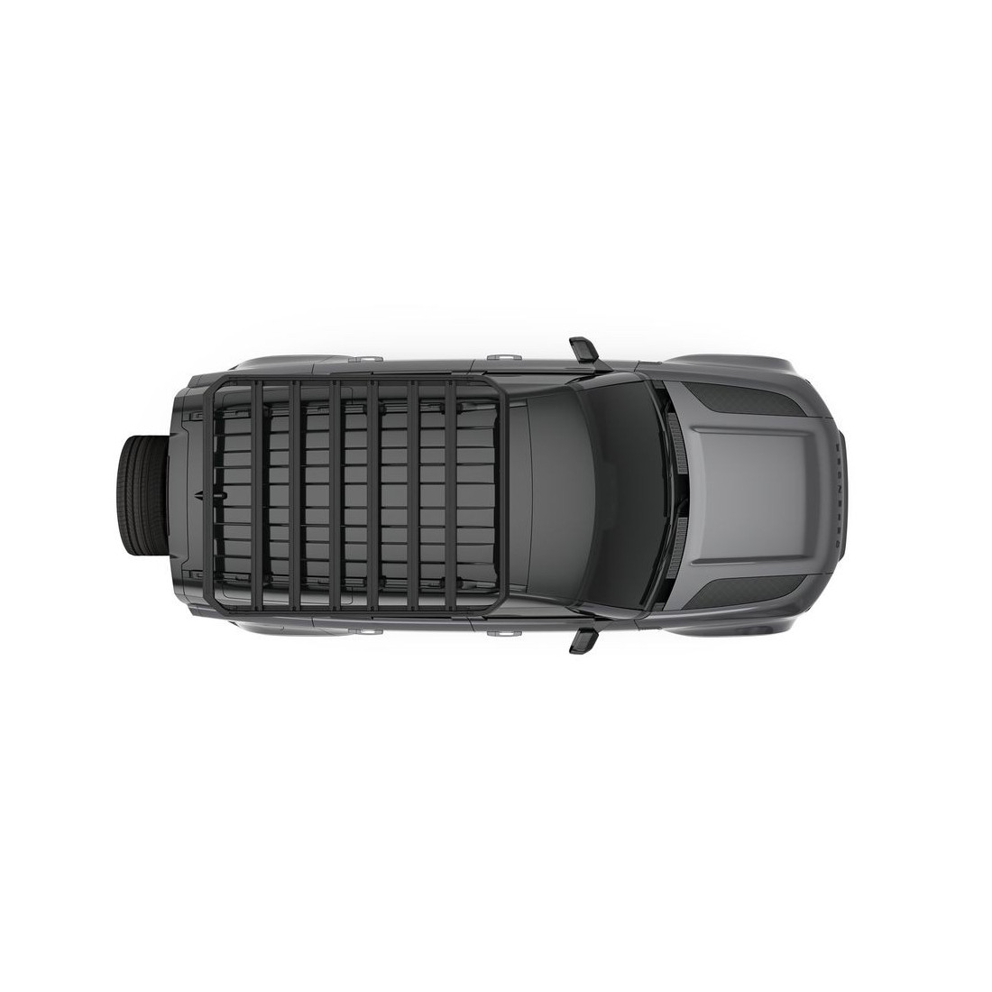 Las ranuras en T integradas en cada barra facilitan la fijación de accesorios como soportes adicionales, tiendas de techo, equipos de camping, componentes para overlanding y mucho más. Asimismo, la plataforma puede transformarse en una cesta de carga mediante la incorporación del Thule Caprock Railing Kit.