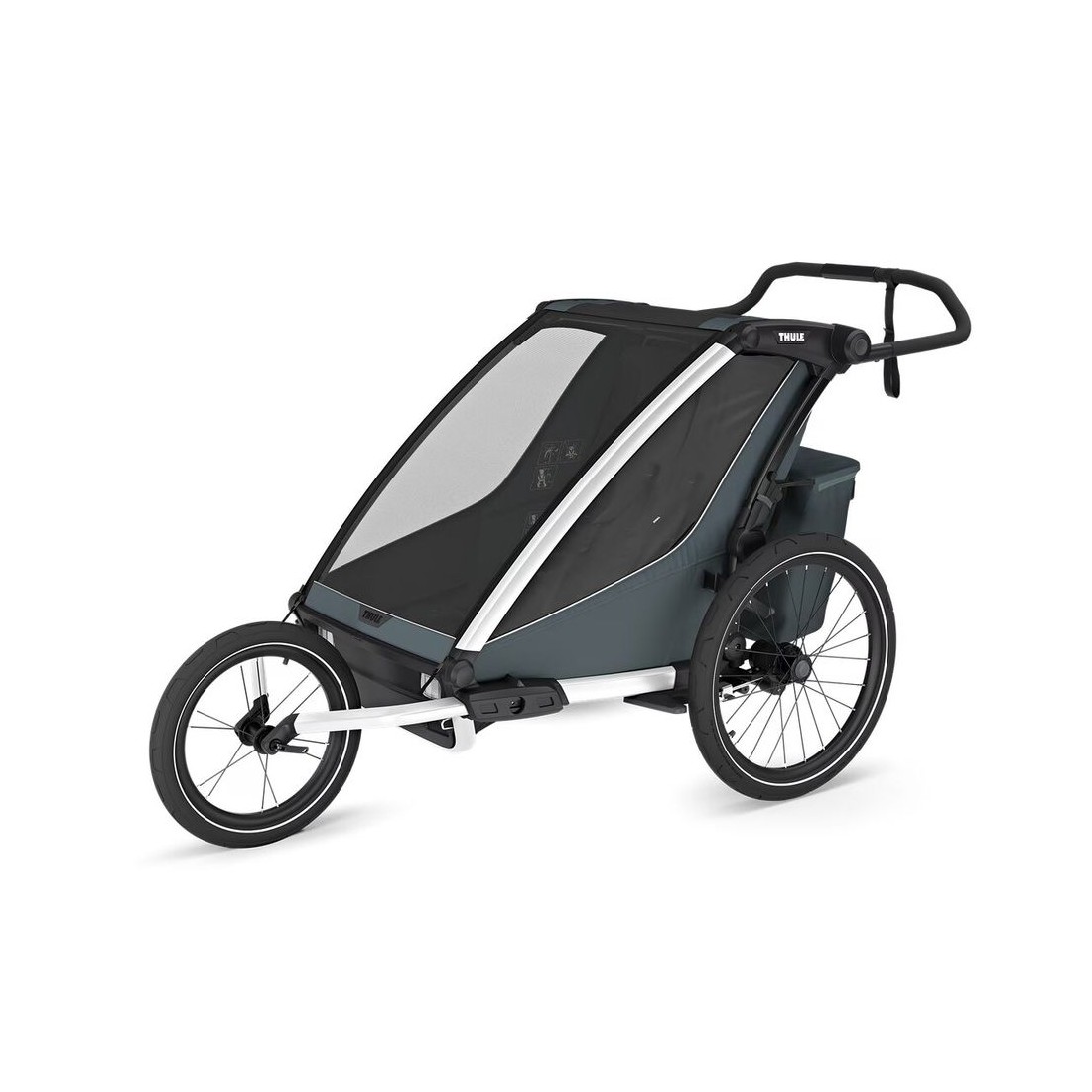 El Thule Chariot Cross 2 se transforma sin esfuerzo en un excelente compañero de entrenamiento adquiriendo un kit para correr o un kit de esquí (se venden por separado). Las transiciones entre diferentes actividades son más fáciles y cómodas que nunca, tanto para los padres como para los niños.