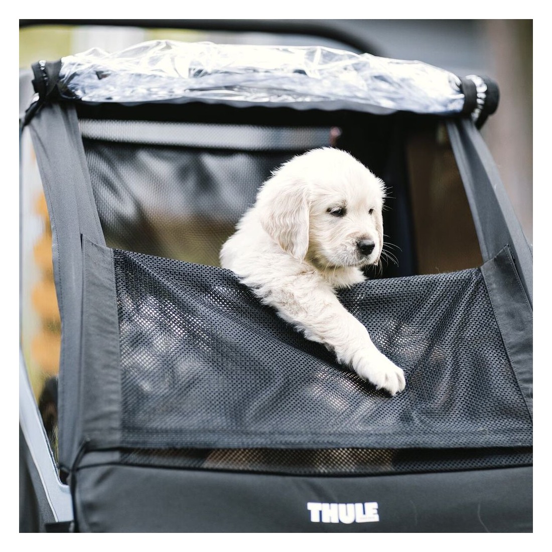 ¿Te gustaría llevar a tu perro contigo de paseo? ¡Ahora es posible! Con el kit de remolque para perros (se vende por separado), puedes convertir el Thule Courier en un remolque perfecto para tu perro. Se incluye una cama suave y un techo con cubierta para la lluvia, así que podrás disfrutar de tus aventuras al aire libre junto a tu mejor compañero.