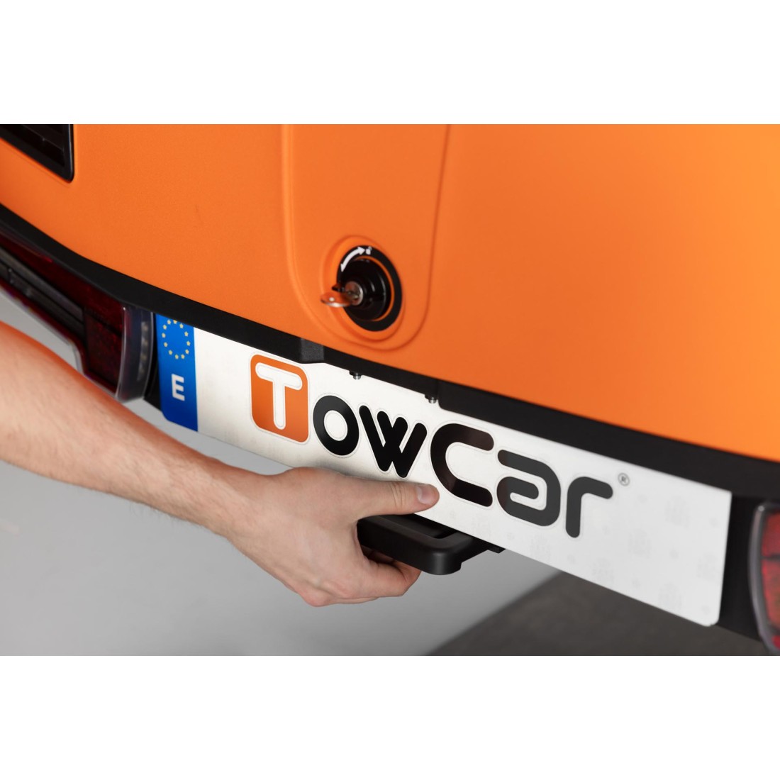 Es abatible mediante pedal y deja posibilidad de acceder al maletero. Además, tiene otra posición de colocación para facilitar su fijación.
