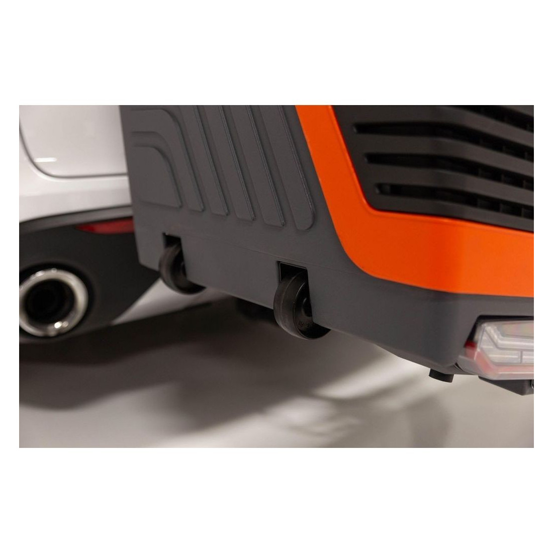 Incorpora ruedas en el lateral para su transporte cuando no lo tengamos instalado. Gracias a su agarrador en la parte superior, y asa en la lateral, podremos manejarlo cómodamente.