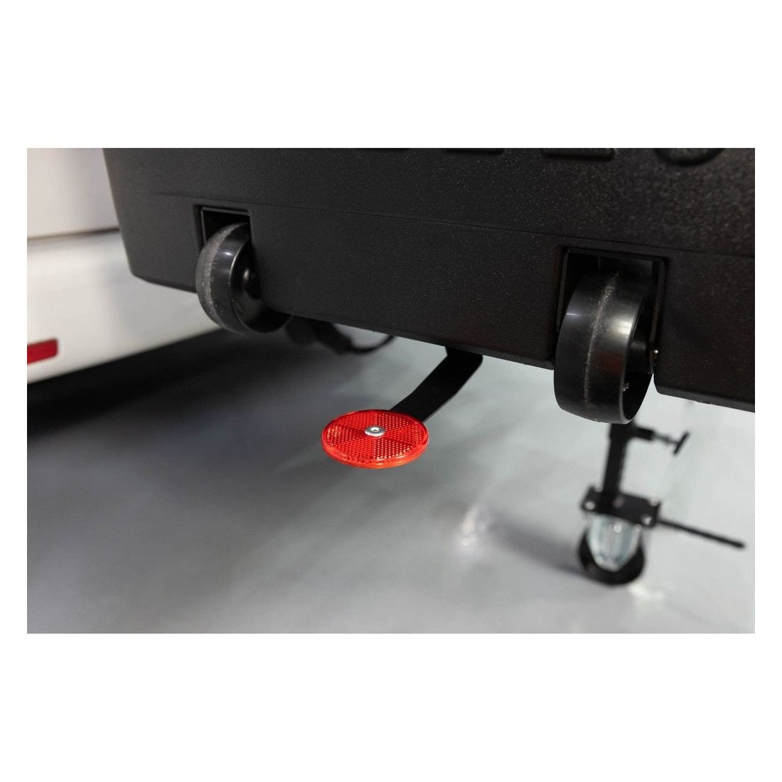 Novedoso sistema que apoya el cofre sobre una rueda de hockey, permitiendo un giro de 180 grados y así poder abrir el portón sin ningún obstáculo. Además, el sistema de seguridad evita que la rueda pueda caer durante la conducción o se pliegue accidentalmente cuando se está usando.