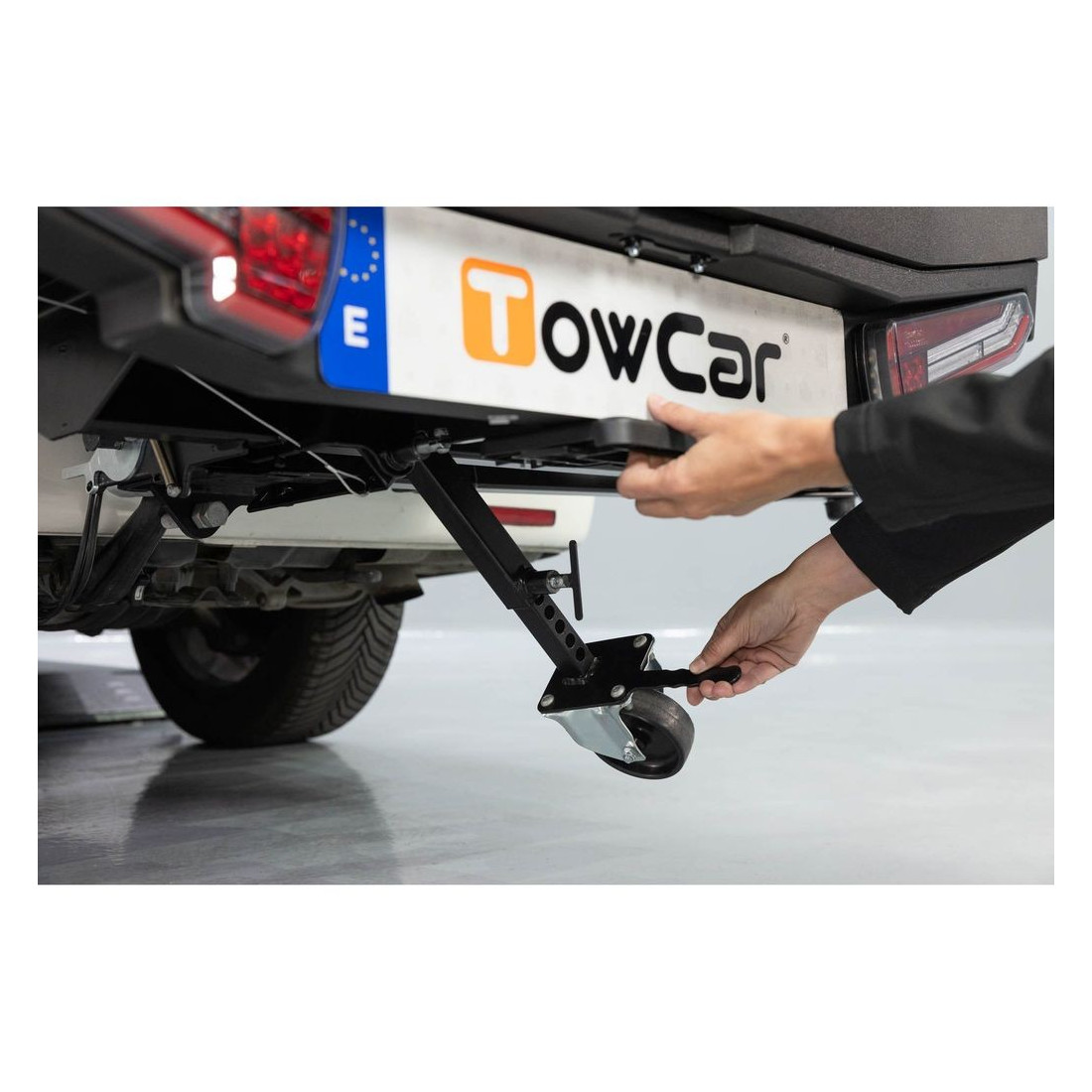 Se instala directamente sobre la bola de remolque sin necesidad de herramientas ya que incorpora la plataforma y fijación. Cuenta con una palanca ergonómica que facilita el anclaje.