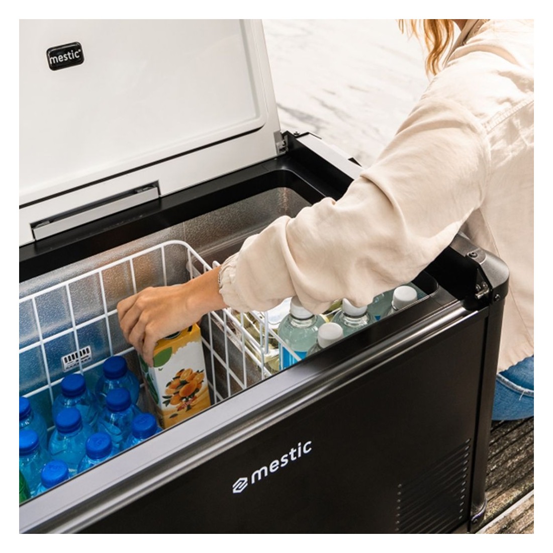 Incluye doble compartimento, cesta de alambre extraíble, cables de alimentación necesarios, luz interior y asas para un transporte más cómodo.