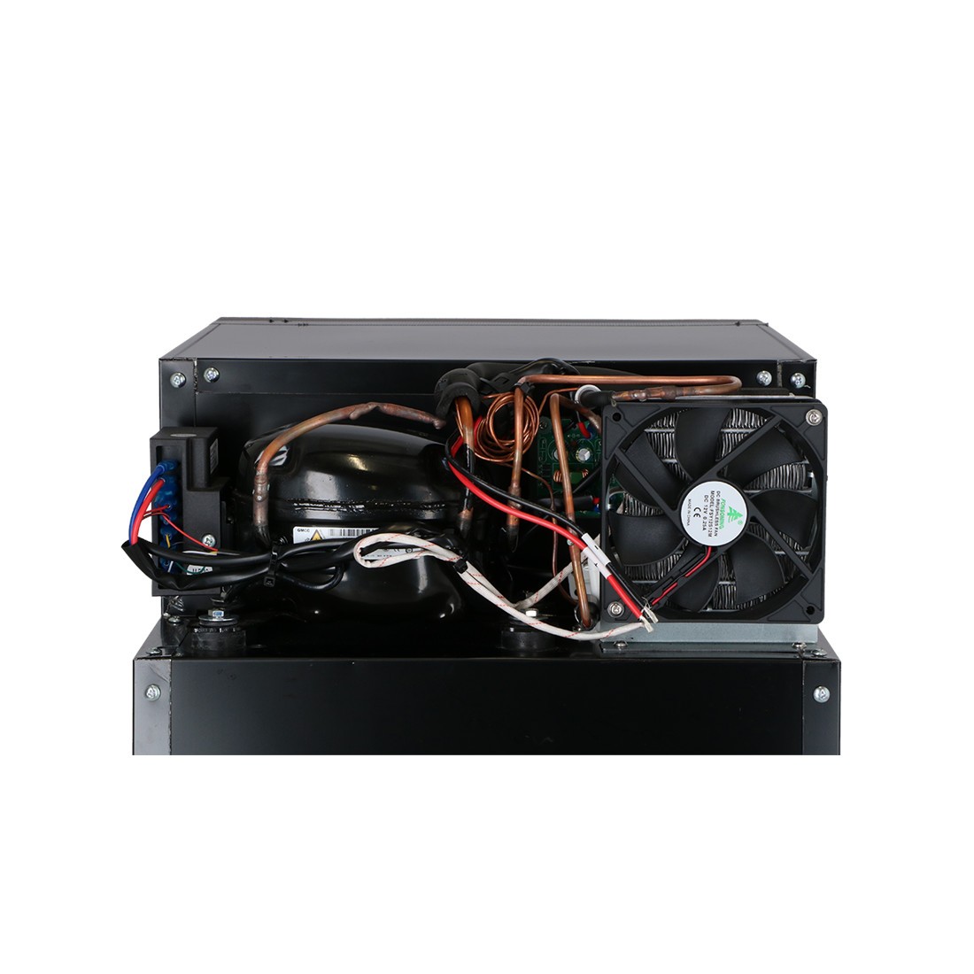 Nevera fija de 43 litros con compresor, doble zona de temperatura (nevera y congelador), control inteligente mediante app, bajo consumo a 12V y diseño compacto ideal para su instalación en vehículos camper, autocaravanas y furgonetas.