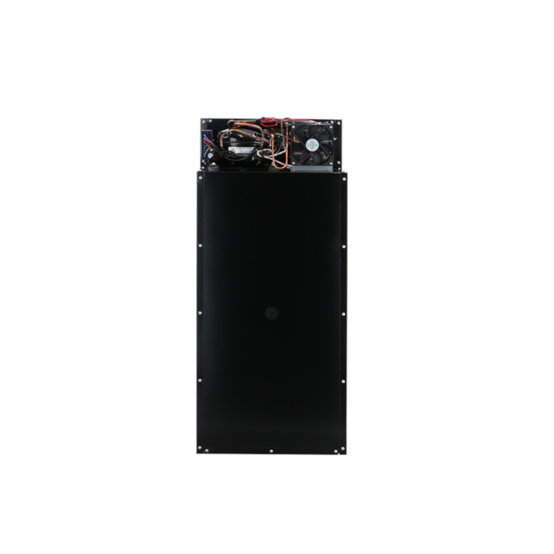 Nevera fija de 90 litros con compresor, doble zona de temperatura (nevera y congelador), control inteligente mediante app, bajo consumo a 12V y diseño compacto ideal para su instalación en vehículos camper, autocaravanas y furgonetas.