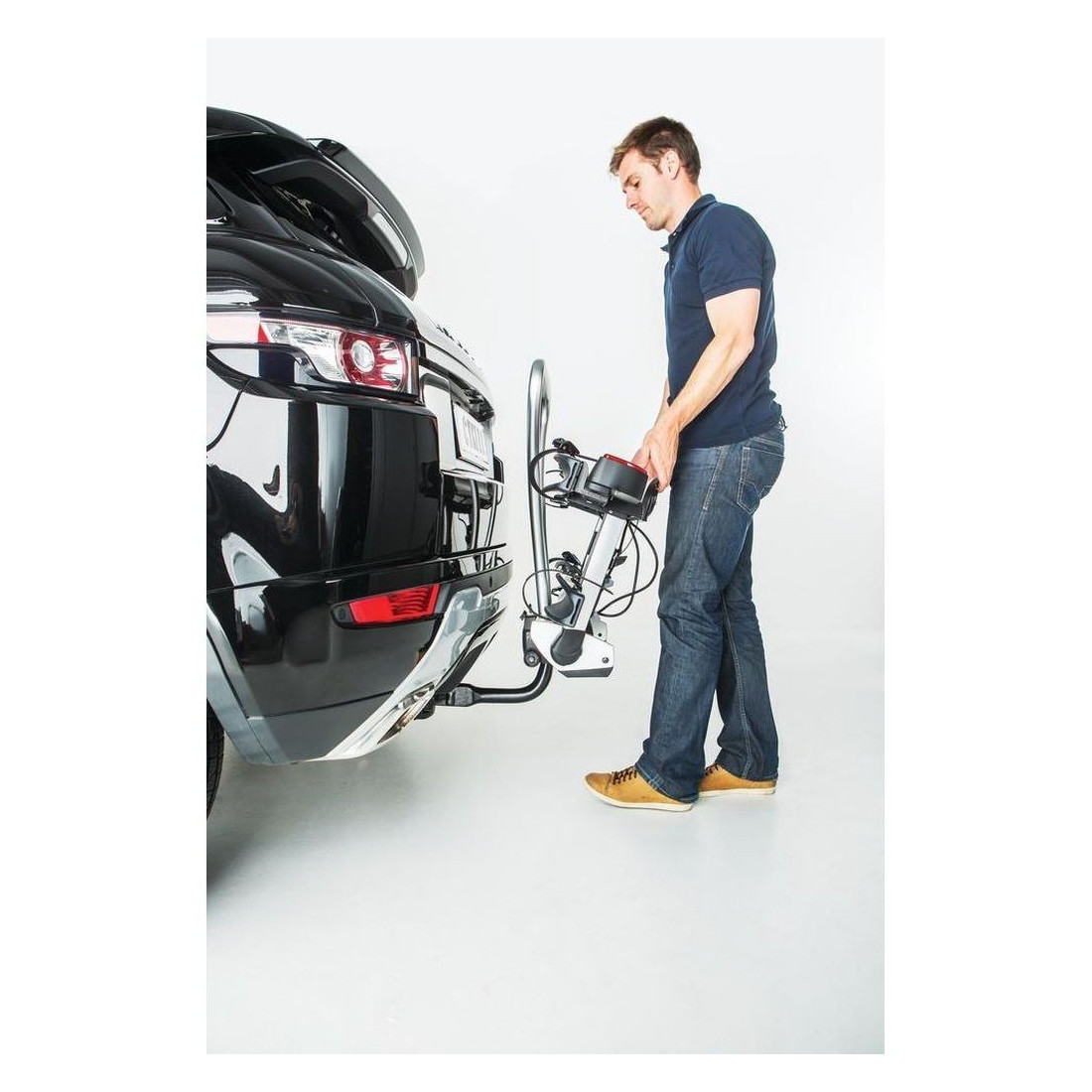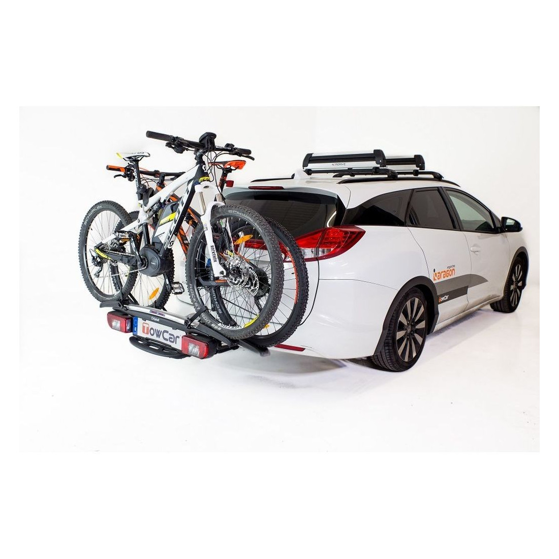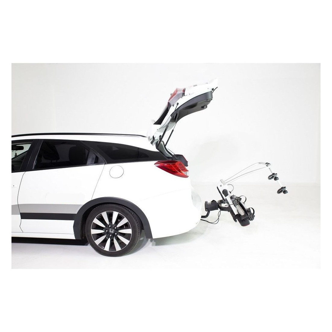 Permite transportar hasta dos bicicletas (hasta 3 con el adaptador) incluso eléctricas sobre la plataforma.