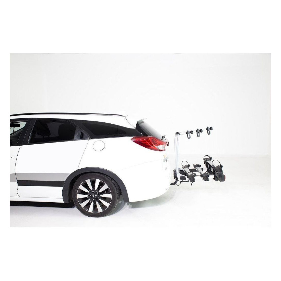 Permite transportar hasta tres bicicletas (hasta 4 con el adaptador) incluso eléctricas sobre la plataforma.