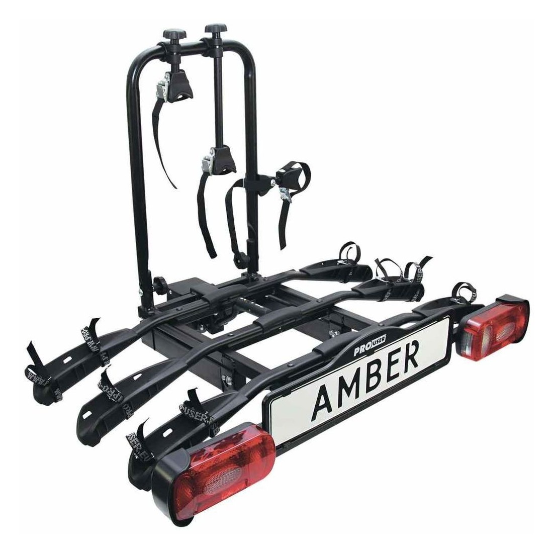 El portabicicletas para bola Amber III se caracteriza por ser ligero y funcional. Cuenta con una capacidad de carga de 60 kg y permite transportar hasta 3 bicicletas de forma cómoda y segura. Cada bicicleta apoya en canales de plástico resistentes, anchos y estables.