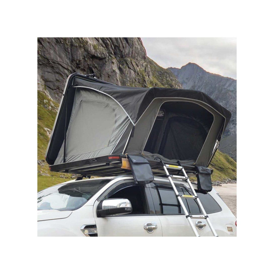 La tienda de techo Brétema es un modelo universal, compatible con turismos, furgonetas camper, 4x4 y todoterrenos. Su nombre, de origen gallego, significa “niebla” o “bruma”, evocando la tranquilidad y magia de la naturaleza que caracteriza a esta zona. Nuestra tienda de campaña para el coche permite disfrutar de momentos de calma y confort, combinando la seguridad de su diseño con detalles pensados para ofrecer una experiencia de acampada completa.
