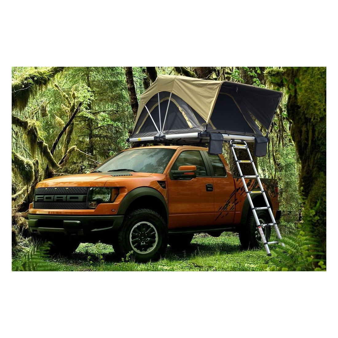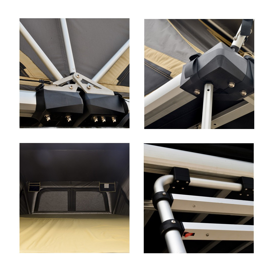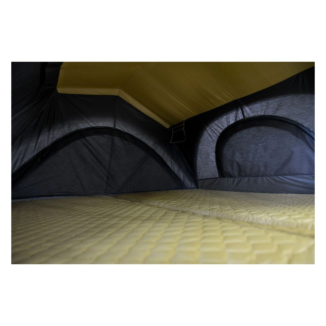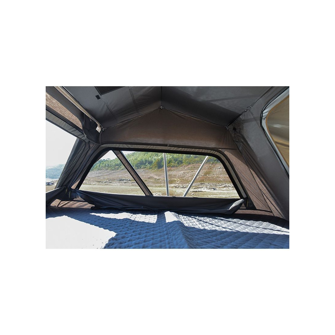 Cuenta con un techo semirrígido que podremos desplegar y convertirlo en la base de nuestra estancia. Así conseguimos un espacio amplio donde poder descansar. Soportes de apoyo extensibles que dejan firme el suelo de la tienda.