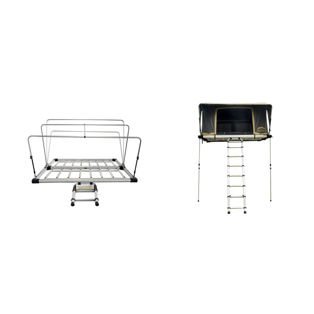 La escalera es telescópica, lo que nos posibilita estacionar terreno irregular. Esta escalera se puede extender hasta los 2,30 metros y soporta un peso máximo de 150KG.