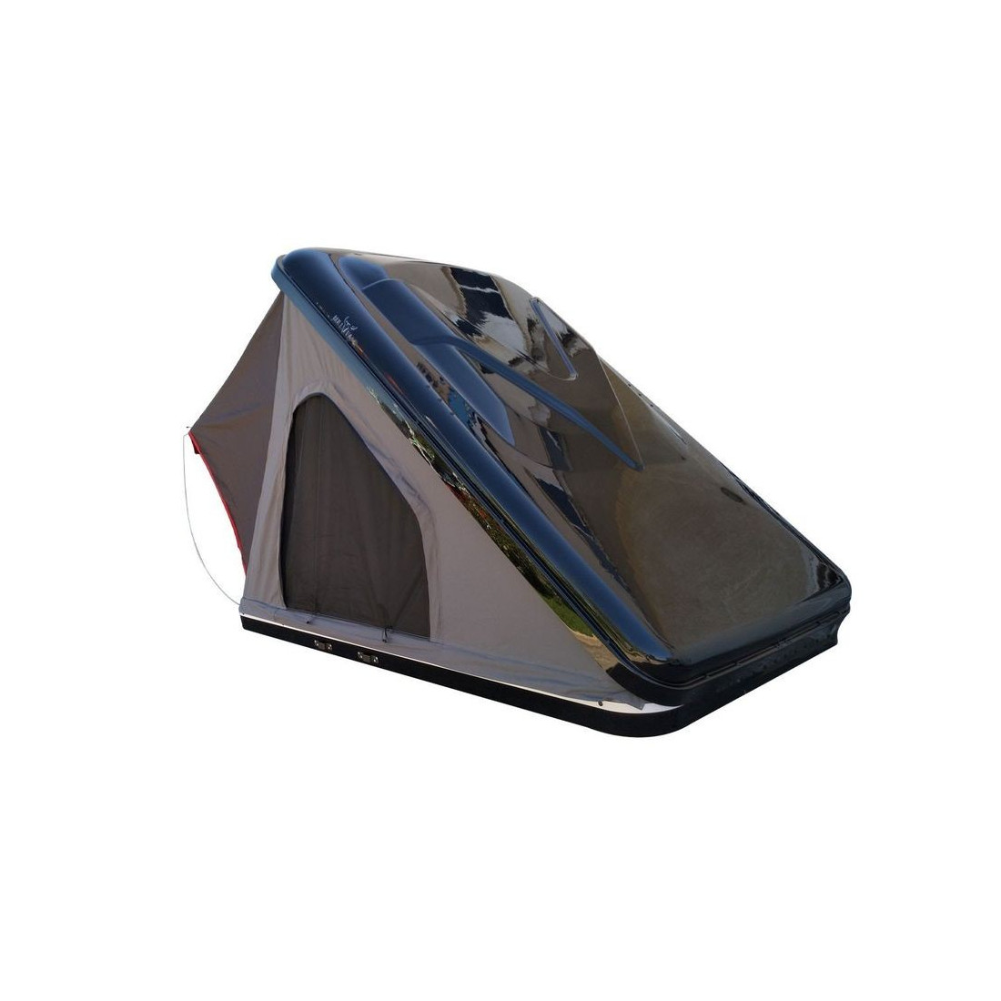 Tiene apertura en forma de cuña y cuenta con una cubierta dura tipo cofre en plástico ABS + PC, que gracias a su forma aerodinámica y su altura reducida, ofrece una resistencia al viento mejorada con respecto al resto de tiendas, además de un diseño elegante en línea con los vehículos más actuales. Material de la base: aluminio + ABS.