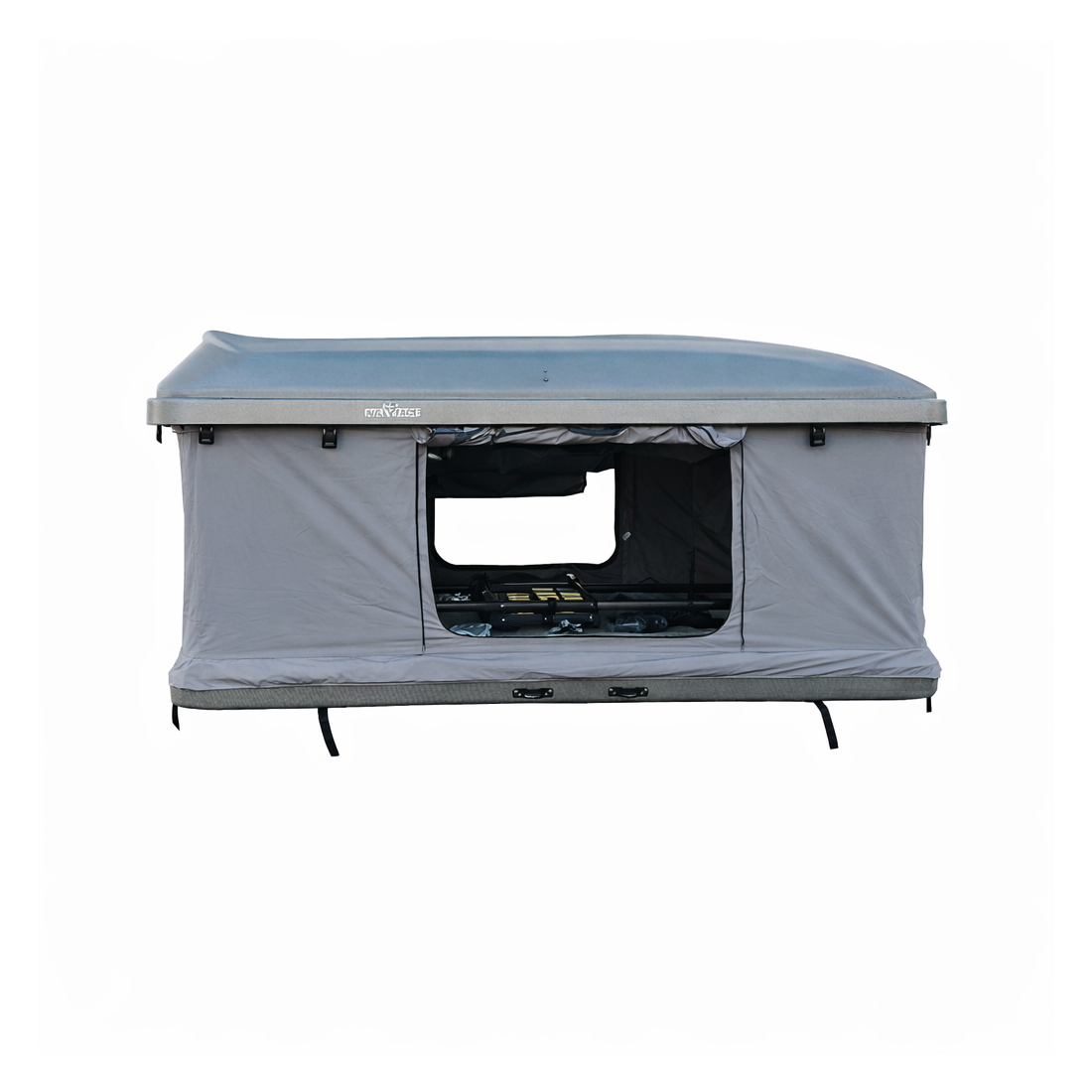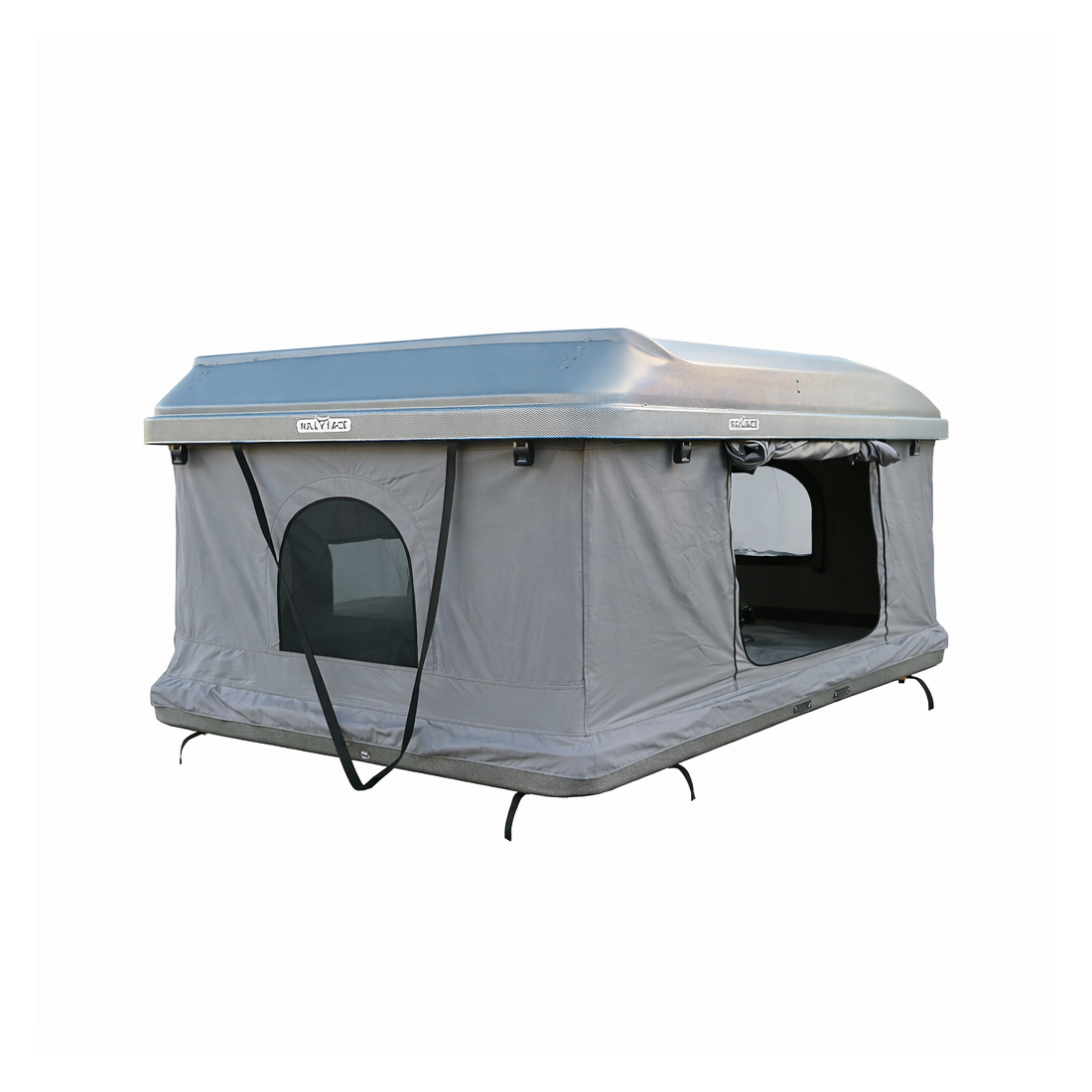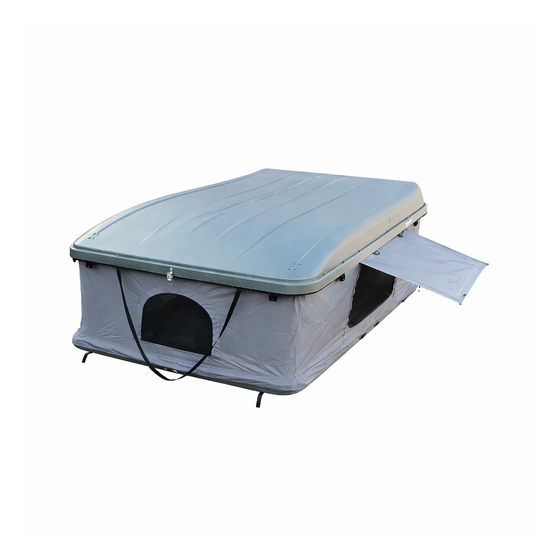 Cuenta con una cubierta rígida tipo cofre fabricada en plástico ABS + ASA (Acrílico Estireno Acrilato-nitrilo), materiales que ofrecen una excelente resistencia a la intemperie. Su terminación exterior destaca por su textura tipo “burbuja” y un diseño aerodinámico de altura reducida que mejora la resistencia al viento respecto a otras tiendas, además de aportar una estética moderna acorde con los vehículos actuales.