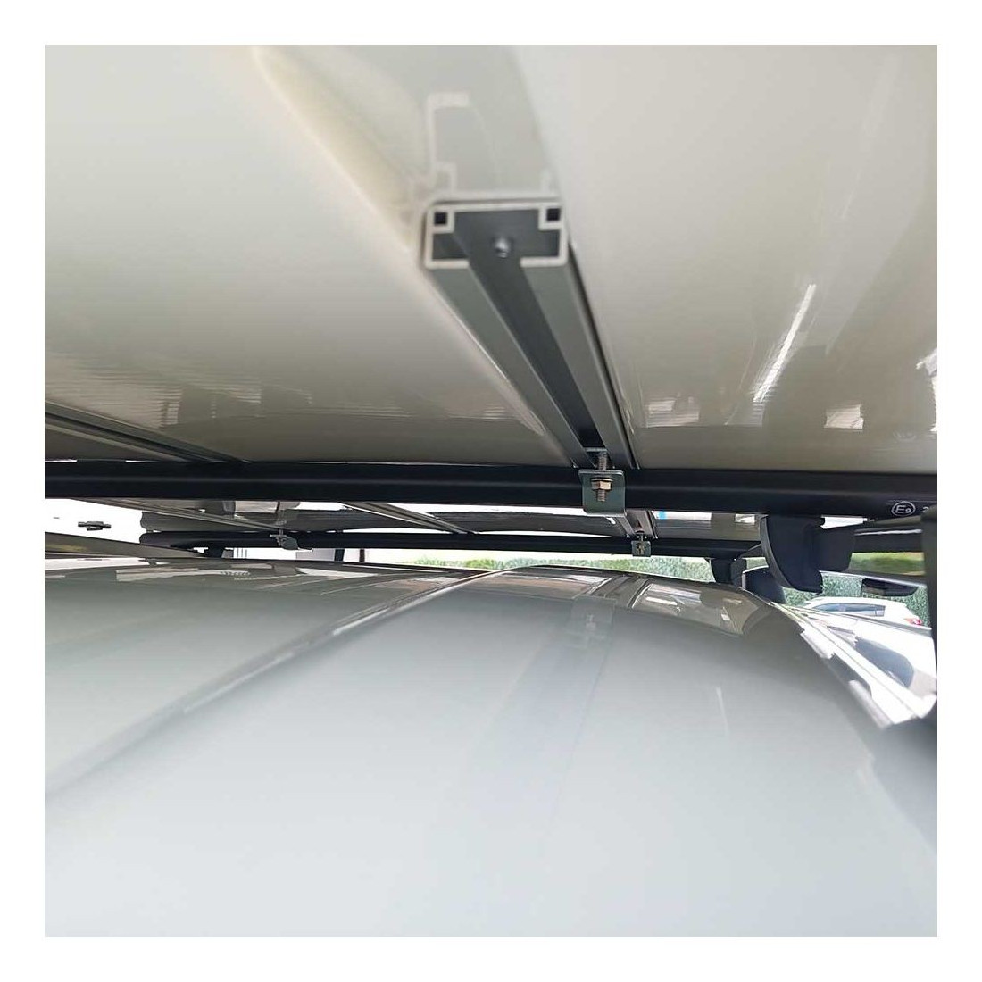 - Fijaciones necesarias para su montaje sobre barras de techo.