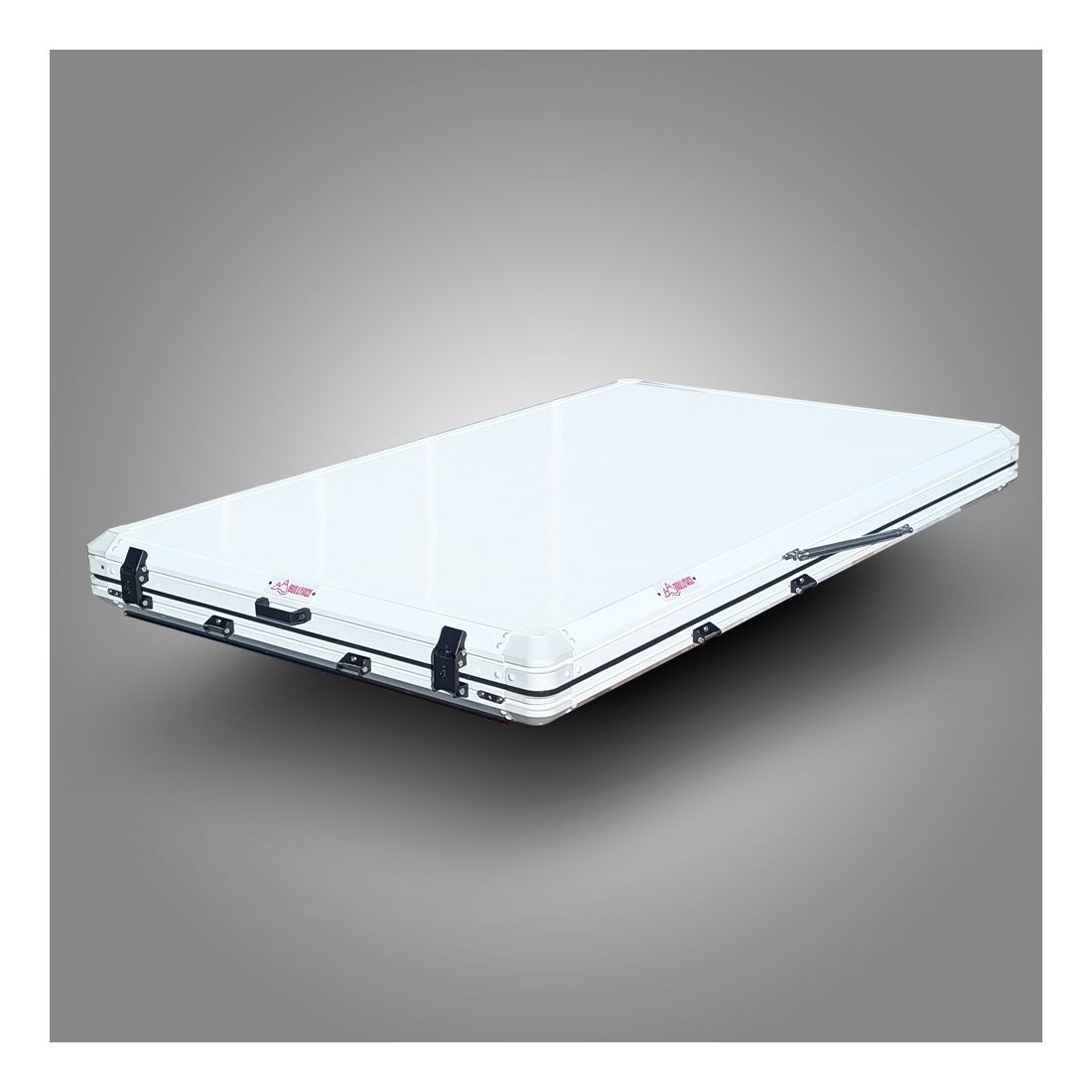 Su apertura en forma de cuña hace que se abra y cierre de forma muy sencilla. Las carcasas (superior e inferior) están fabricadas en aluminio honeycomb (panel nido de abeja), haciendo que sea muy resistente a los impactos y reduciendo su peso. Lona en tejido Oxford PU4000 UPF50+ con propiedades waterproof 250D.