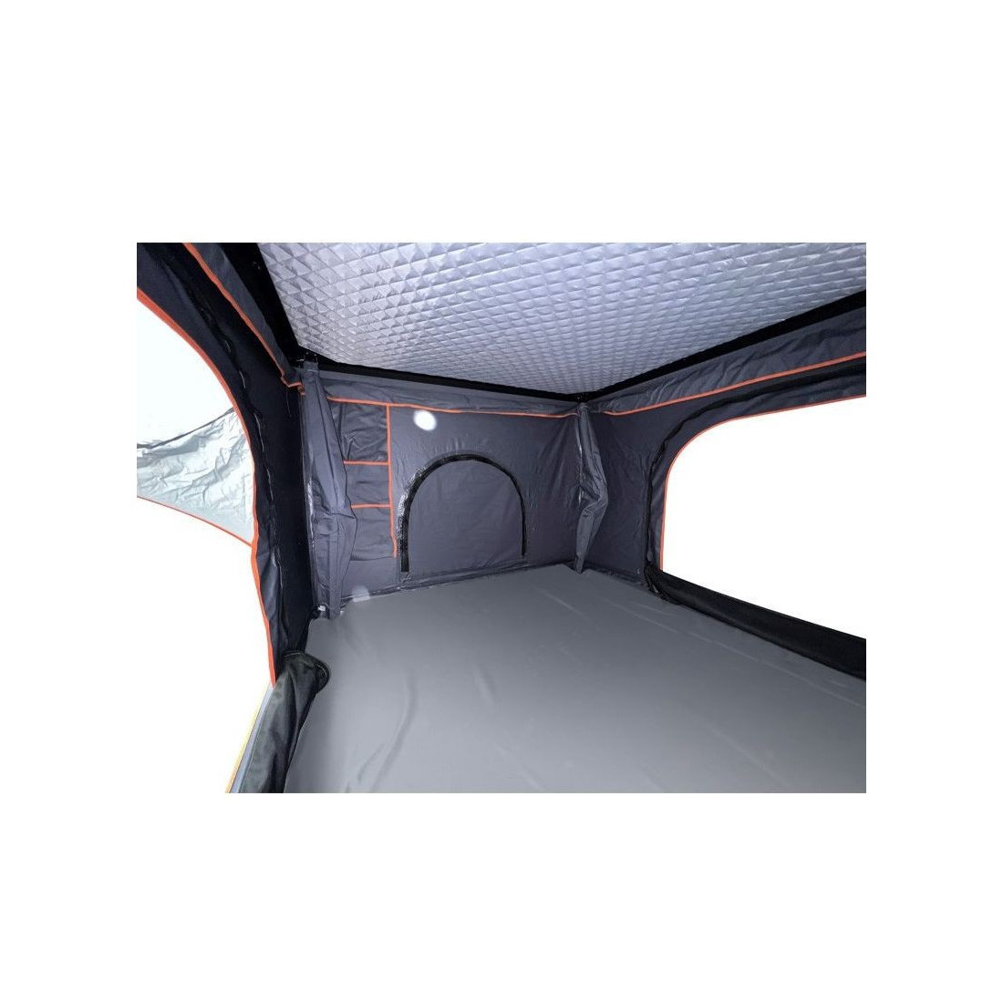 Consta de dos puertas de acceso laterales que incluyen mosquiteras y con posibilidad de abrirlas tipo toldo gracias a sus varillas de fibra.