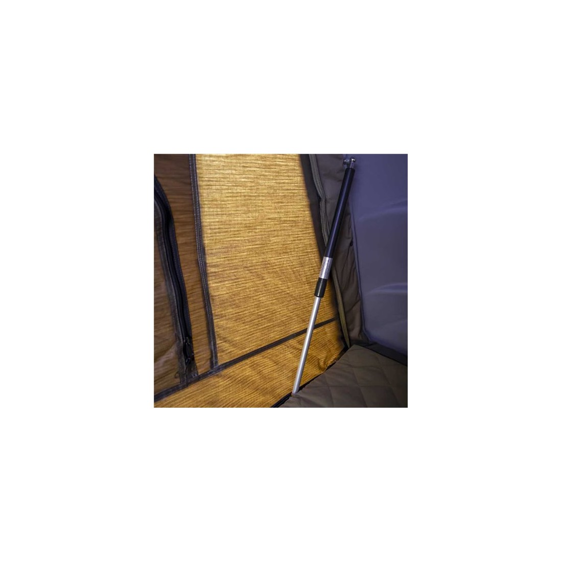 - Escalera telescópica de acceso que incluye una funda para que se pueda guardar dentro de la tienda cuando esta esté plegada, y así facilitar su transporte.