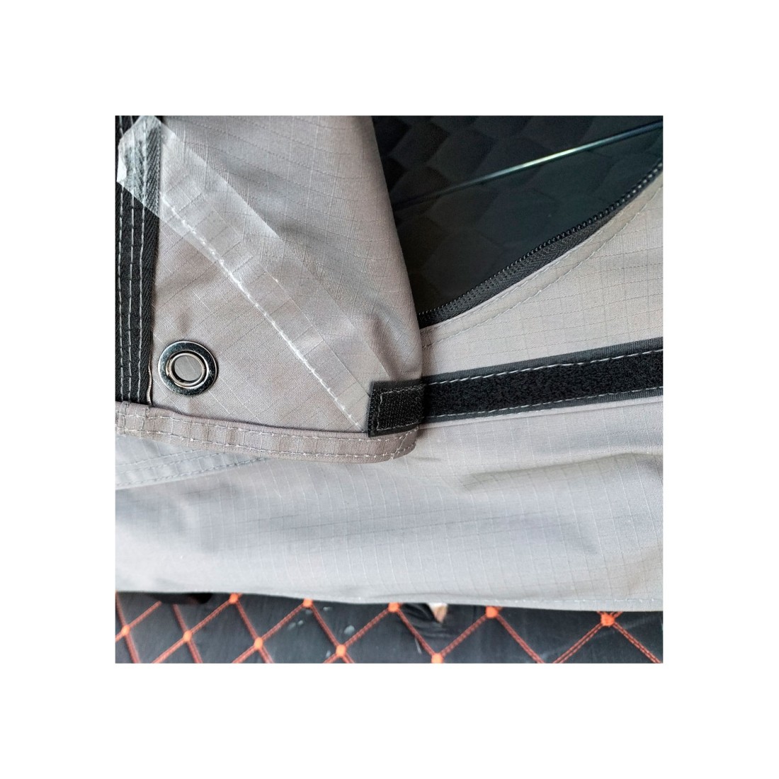 Consta de dos puertas laterales y cuatro ventanas panorámicas en esquinas, con mosquiteras incluidas y con posibilidad de abrirlas tipo toldo gracias a sus varillas de acero. Permite disfrutar de una vista de casi 360 grados.