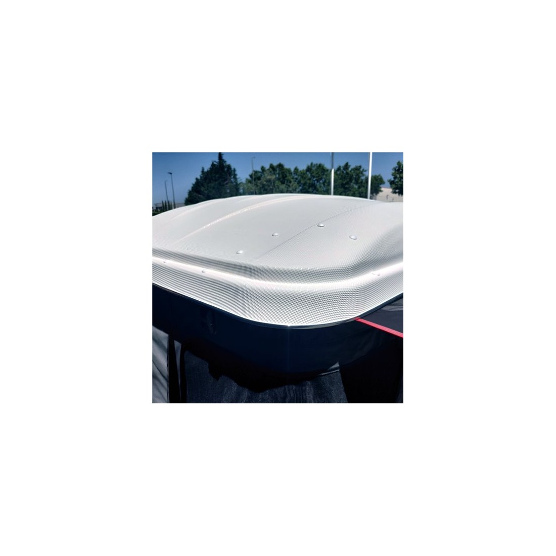 Cuenta con una cubierta dura tipo cofre en plástico ABS + ASA que aportan una extraordinaria resistencia a la intemperie y una estética más atractiva gracias a su textura. Su forma aerodinámica y su altura reducida, ofrece una resistencia al viento mejorada con respecto al resto de tiendas.