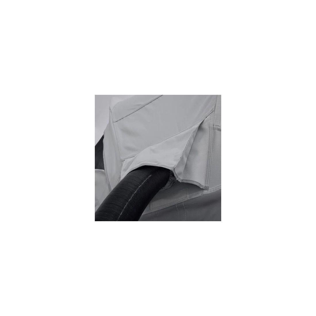 La cubierta para lluvia desmontable dispone de tres configuraciones distintas, adaptándose fácilmente a cambios meteorológicos. Además, es compatible con anexo o toldo opcional (se venden por separado), ampliando el espacio protegido para mayor comodidad en estancias prolongadas.