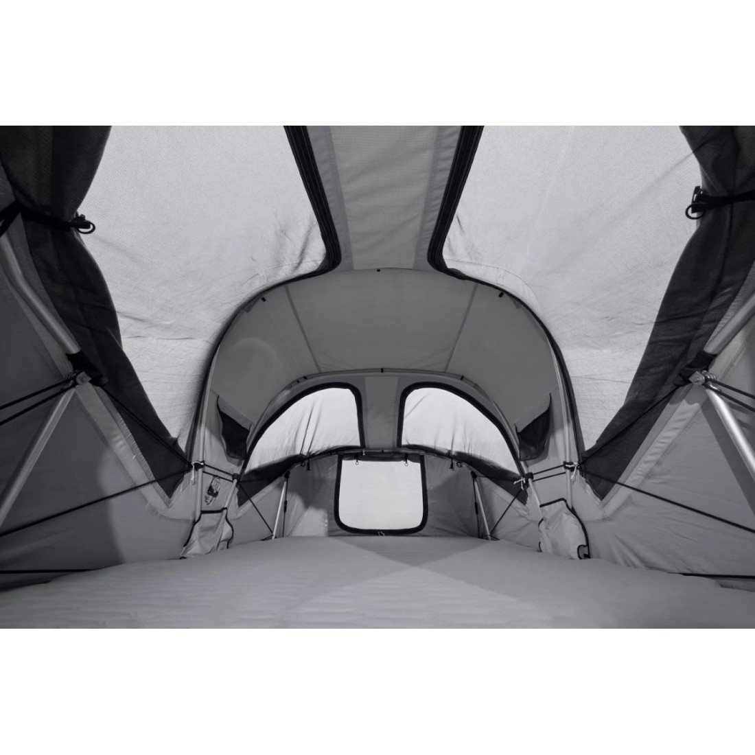 Comodidad y descanso garantizados, ya que dormir elevado del suelo supone olvidarse de la humedad, el frío, las irregularidades del terreno y los insectos. Su interior ha sido diseñado para alojar cómodamente a 2 adultos y 1 niño, o a 2 adultos con amplio espacio, permitiendo moverse cómodamente y organizar las pertenencias gracias a sus bolsillos interiores.