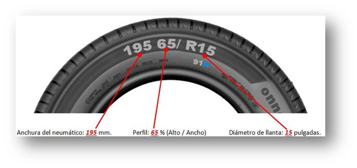 Para verificar la compatibilidad de las cadenas de nieve, es necesario disponer de las medidas exactas del neumático: ancho, perfil y diámetro de la llanta (ver imagen adjunta). Pincha aquí y configura tus neumáticos en nuestra guía.