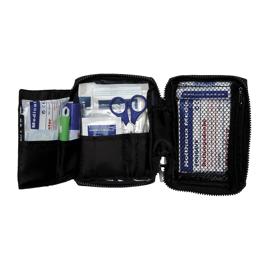 Botiquín de primeros auxilios que incluye todo lo necesario para atender pequeños accidentes durante el viaje.
