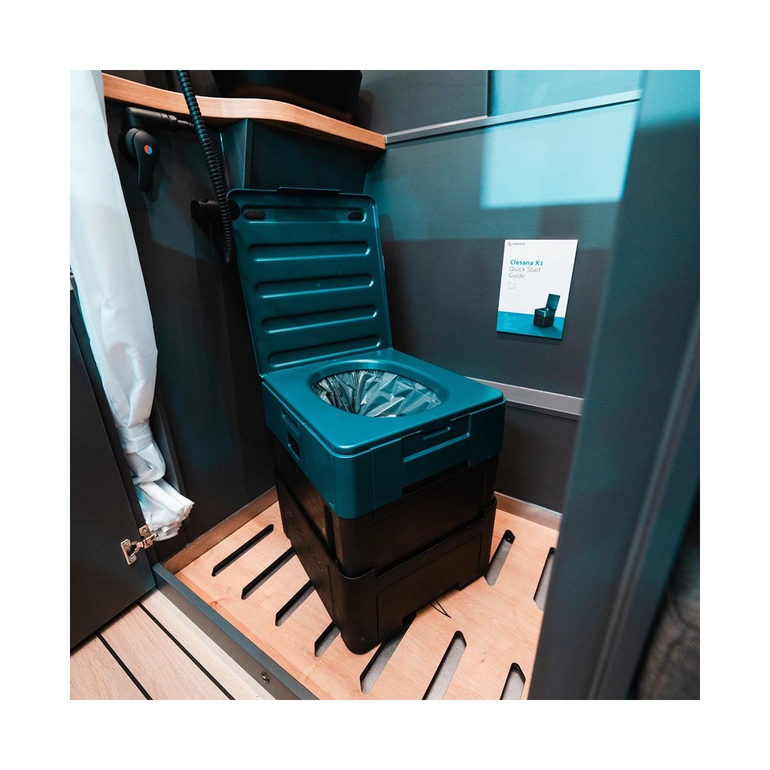 El inodoro/WC Clesana X1 es una solución innovadora que combina un desarrollo avanzado, autonomía y máxima higiene. Este modelo ha sido diseñado para adaptarse a cualquier entorno, ya que el inodoro portátil sella automáticamente los residuos mediante una lámina de barrera, garantizando limpieza y reduciendo los malos olores. Compacto, eficiente y fácil de transportar, es ideal tanto para viajes o escapadas camper como para aplicaciones profesionales.
