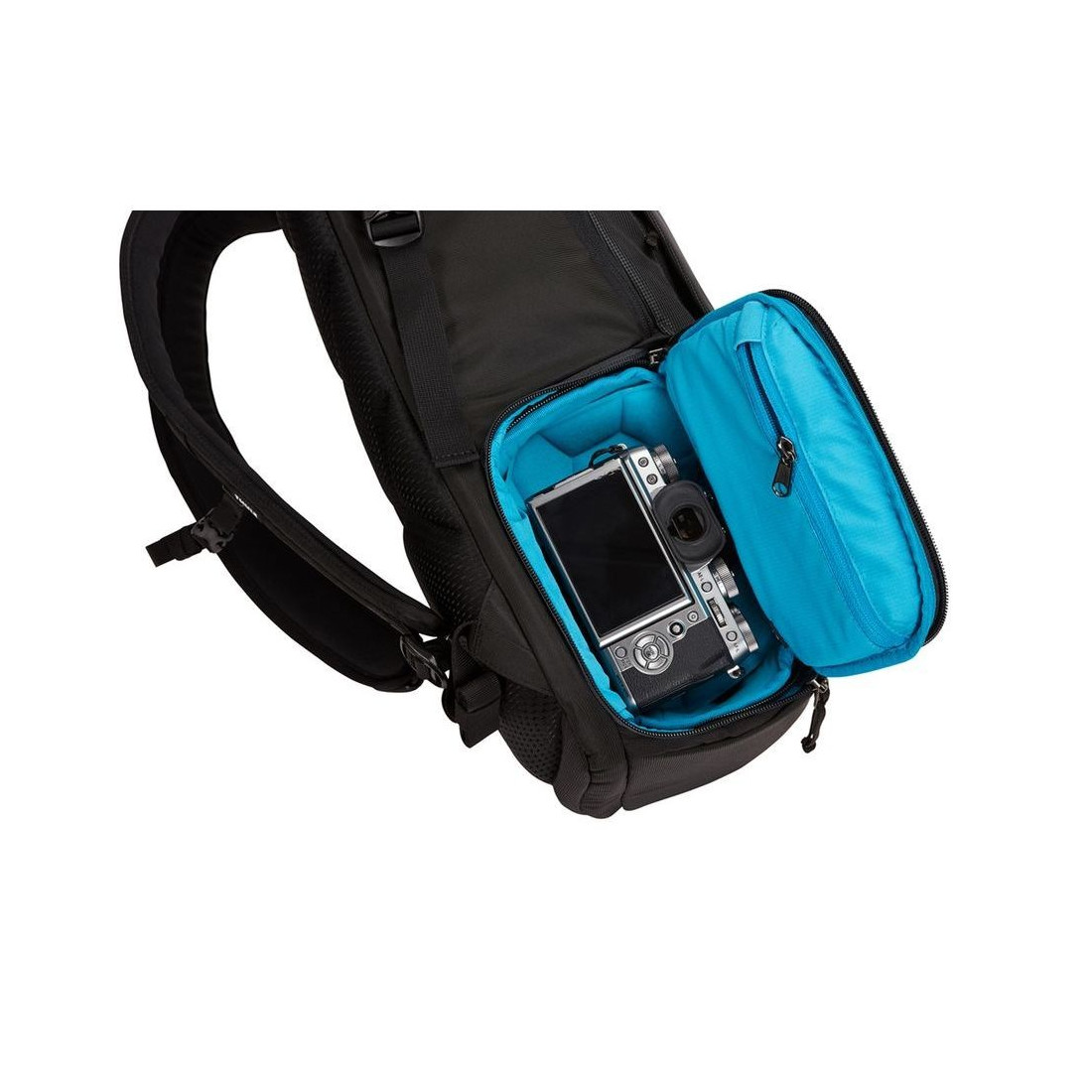 El compartimento protector para cámara se puede extraer para dejar la cámara en casa o para llevarla en otra bolsa.