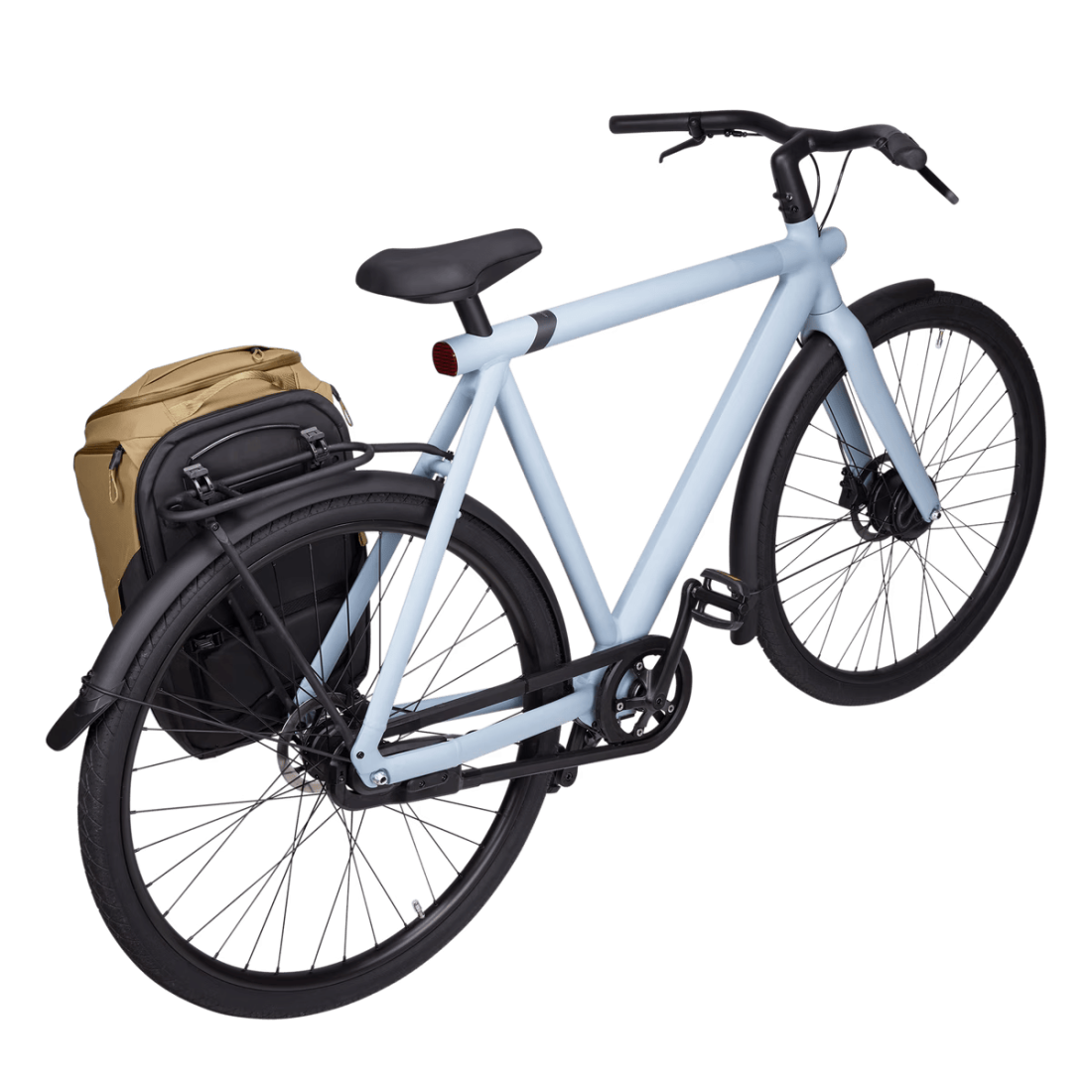 Alforja de bicicleta híbrida y mochila 26 litros beige.