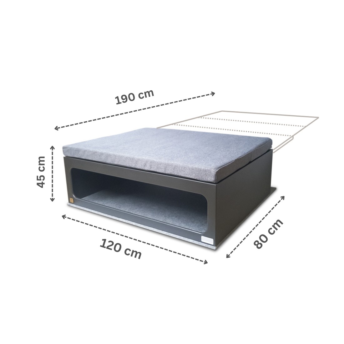 - Ancho 120 cm / Alto 45 cm / Largo 190 cm