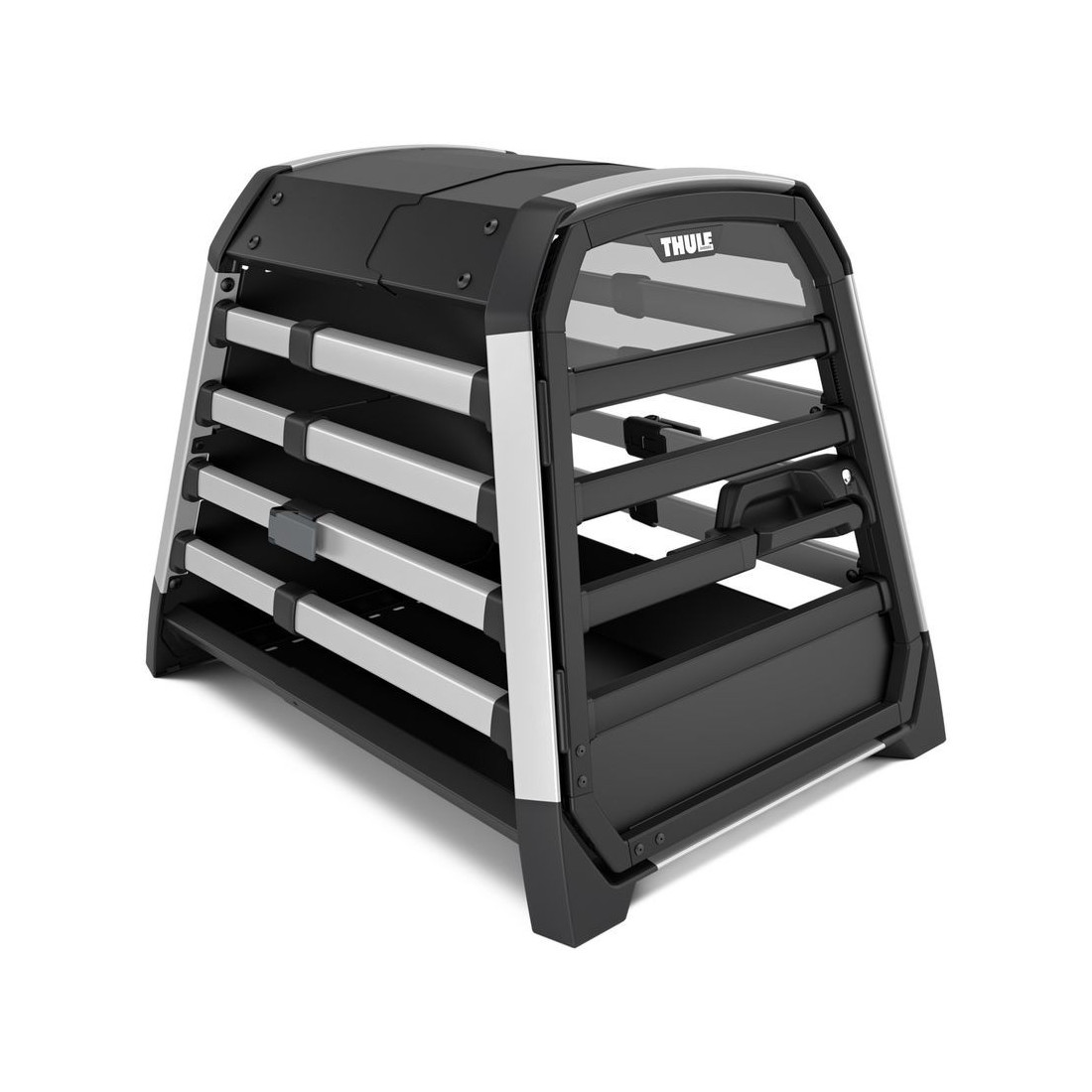 El transportín para perros THULE Allax en tamaño S es recomendable para mascotas con altura hasta 45 cm. Está diseñado para instalarlo en el maletero del vehículo y asegura un transporte cómodo, limpio y seguro.
