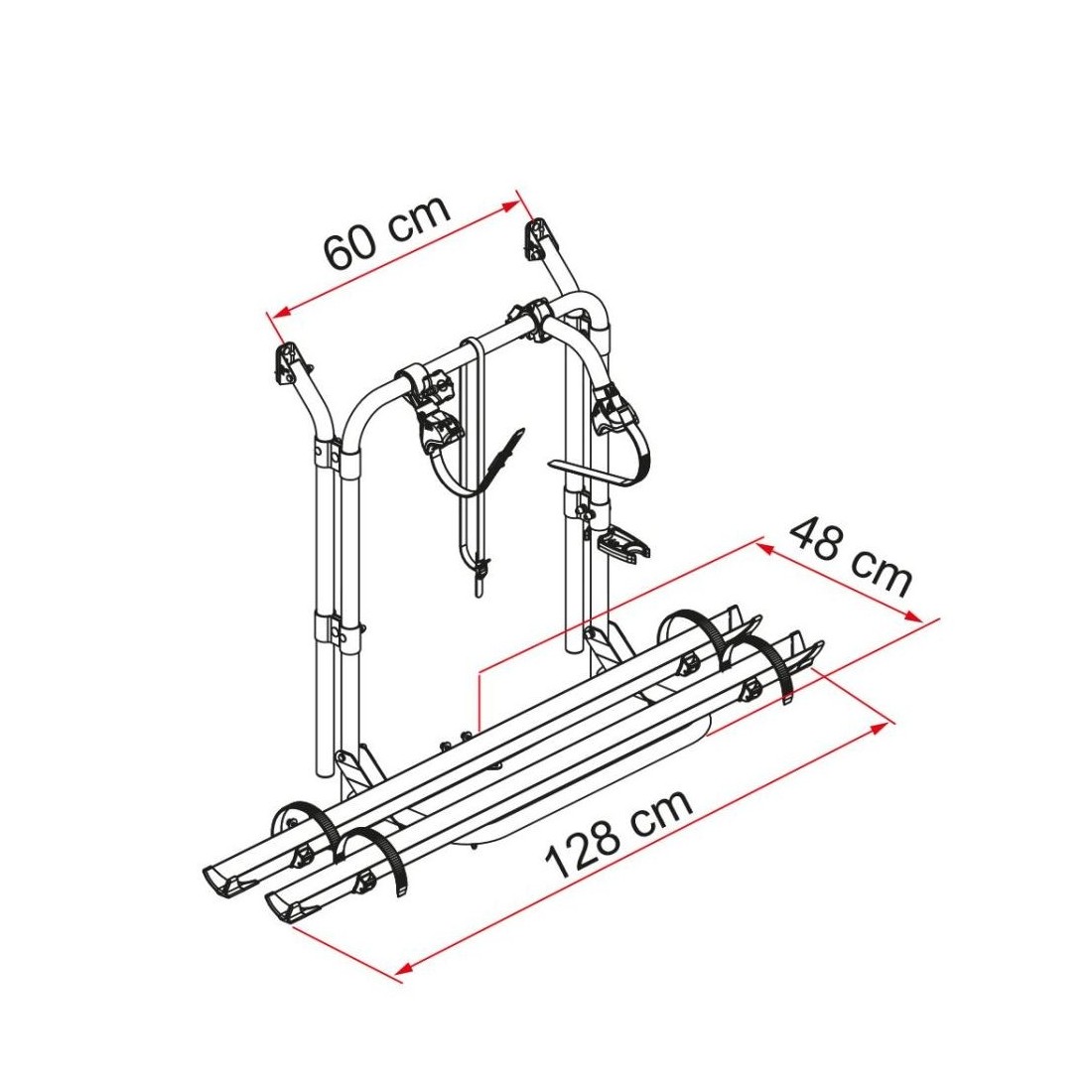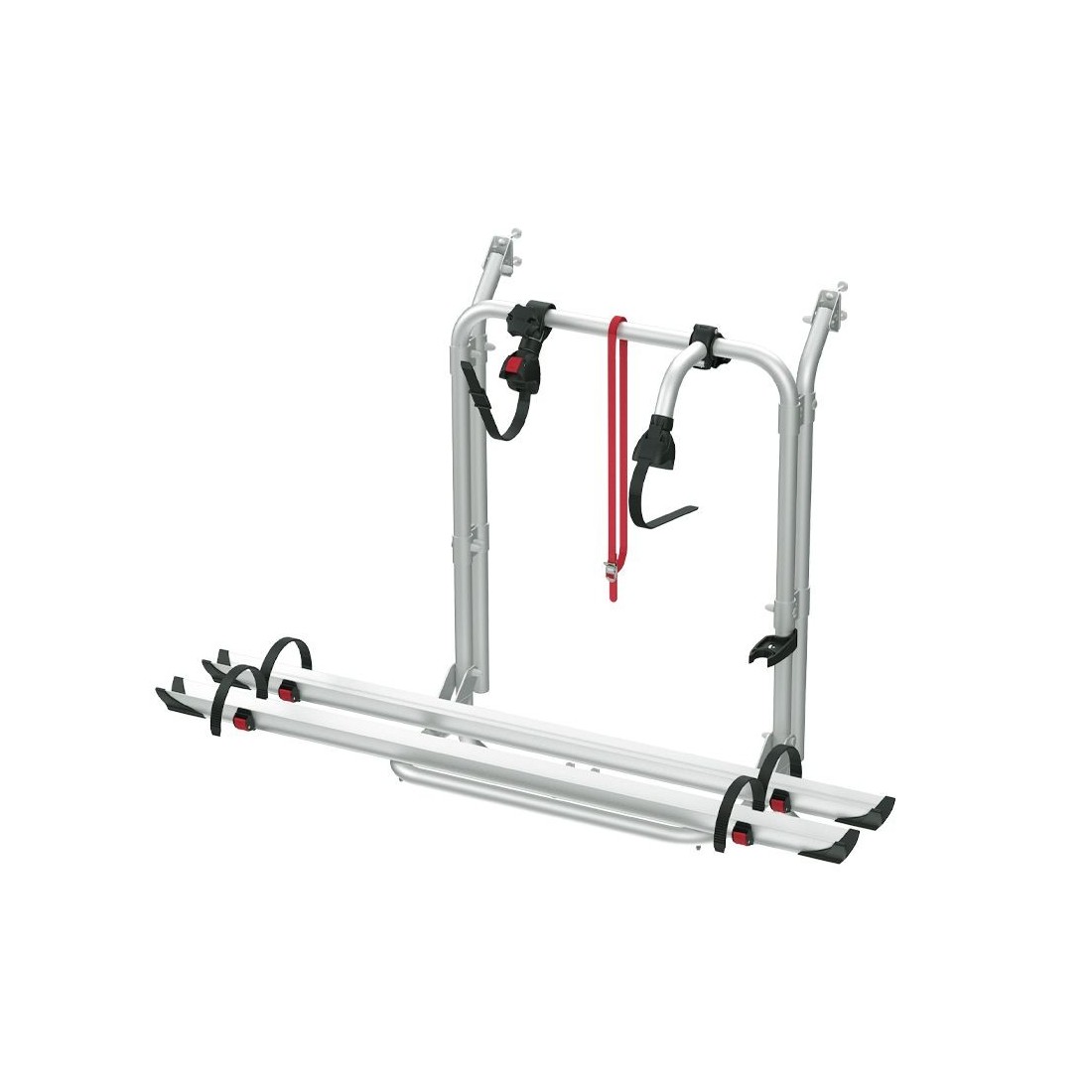 Portabicicletas compacto y versátil que permite el transporte cómodo de hasta dos bicicletas en la zona trasera de la furgoneta.