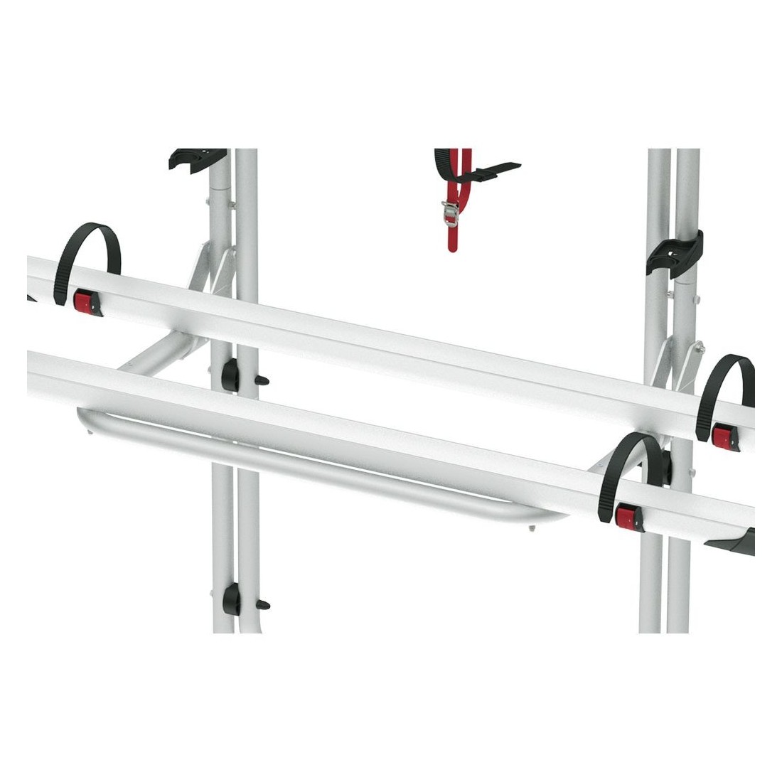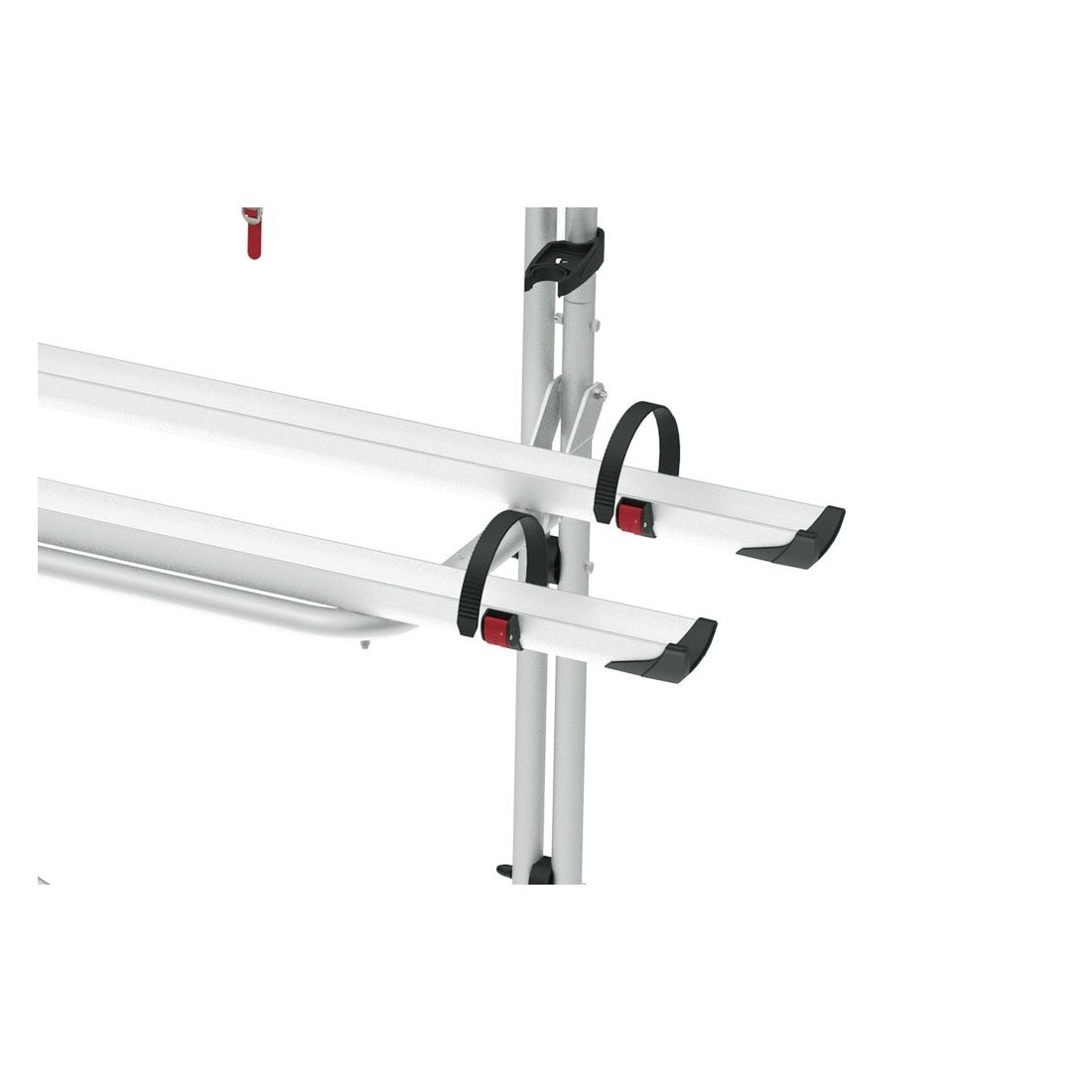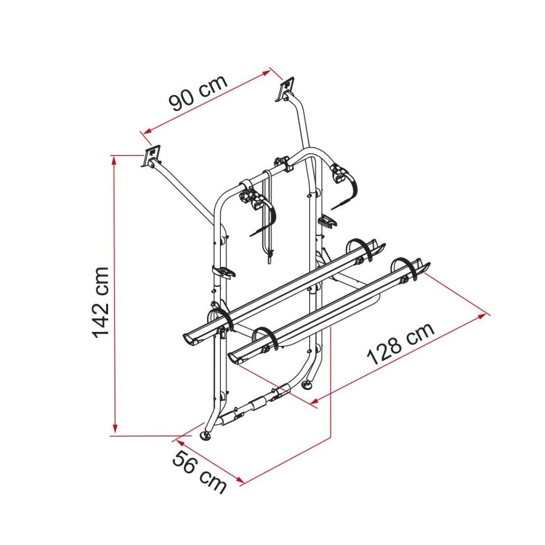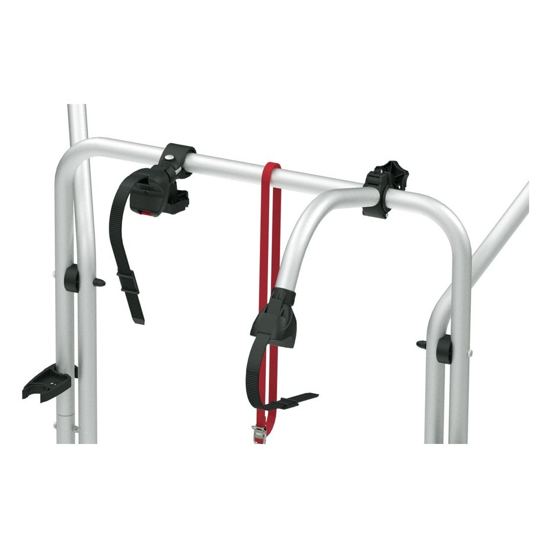 La instalación se realiza fijándolo al borde del portón trasero mediante tensores integrados en el portabicicletas. Garantiza estabilidad y facilidad de montaje.