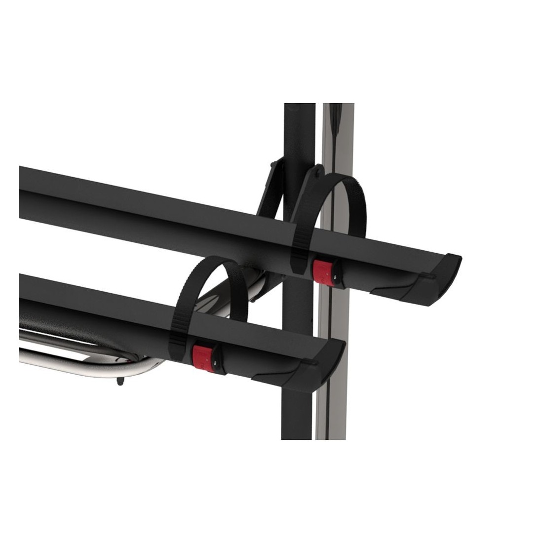 La instalación se realiza fijándolo a la puerta trasera derecha. Utiliza las bisagras de la puerta, por lo que garantiza estabilidad y facilidad de montaje. Además, permite la apertura de la puerta con el portabicicletas instalado, incluso con las bicis cargadas.