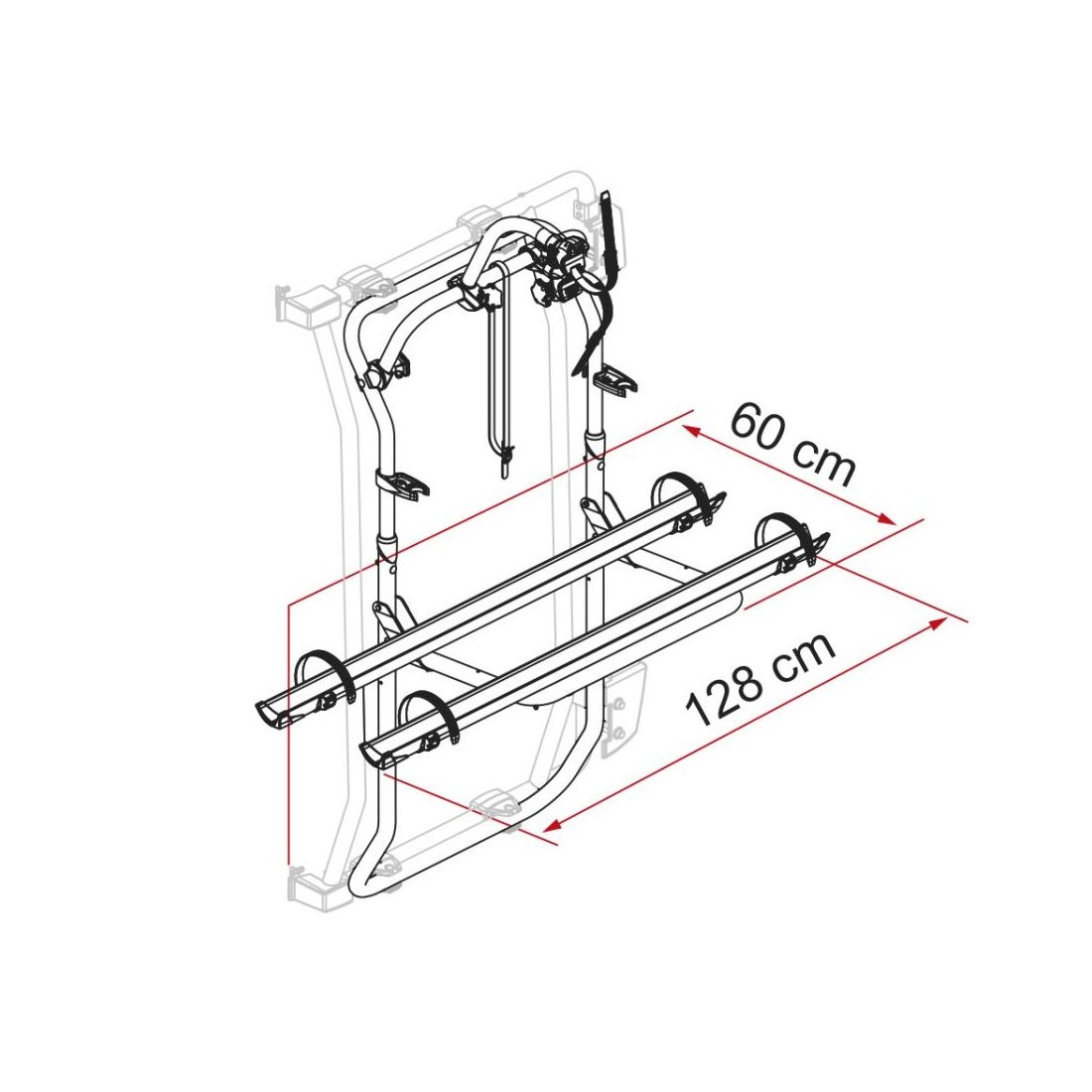 Portabicicletas específico para Volkswagen Crafter serie II / MAN TGE (desde 2017) H3/H4 resistente y seguro. Permite el transporte de 2 bicicletas en la zona trasera (ampliable a 3) y compatible con bicicletas eléctricas.