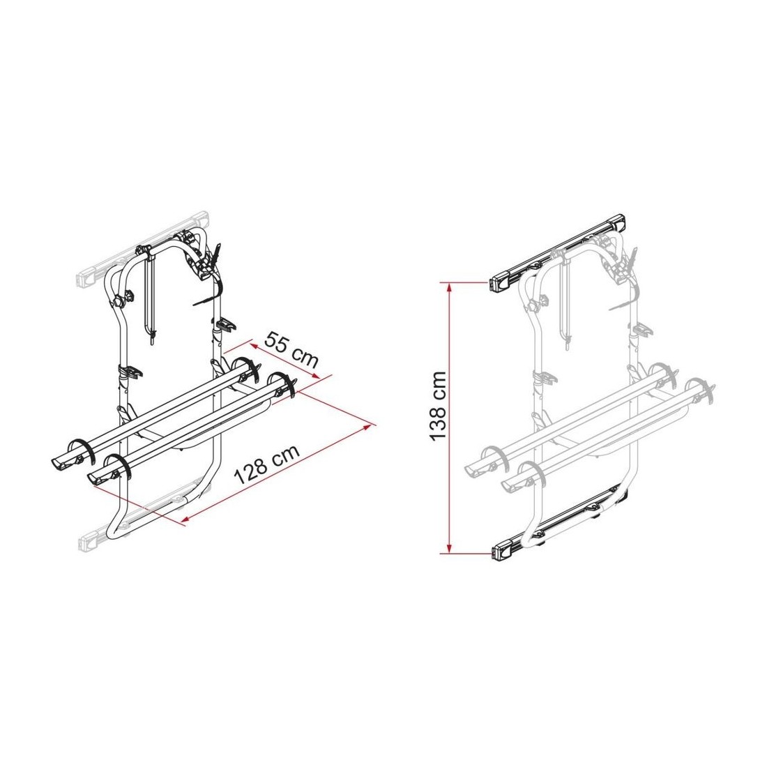 La estructura Fiamma DJ nos brinda la posibilidad de usar un mismo portabicicletas en diferentes modelos de vehículo. Dispone de 3 posiciones, para poder adaptarse a cualquier necesidad: posición estándar, media o baja.